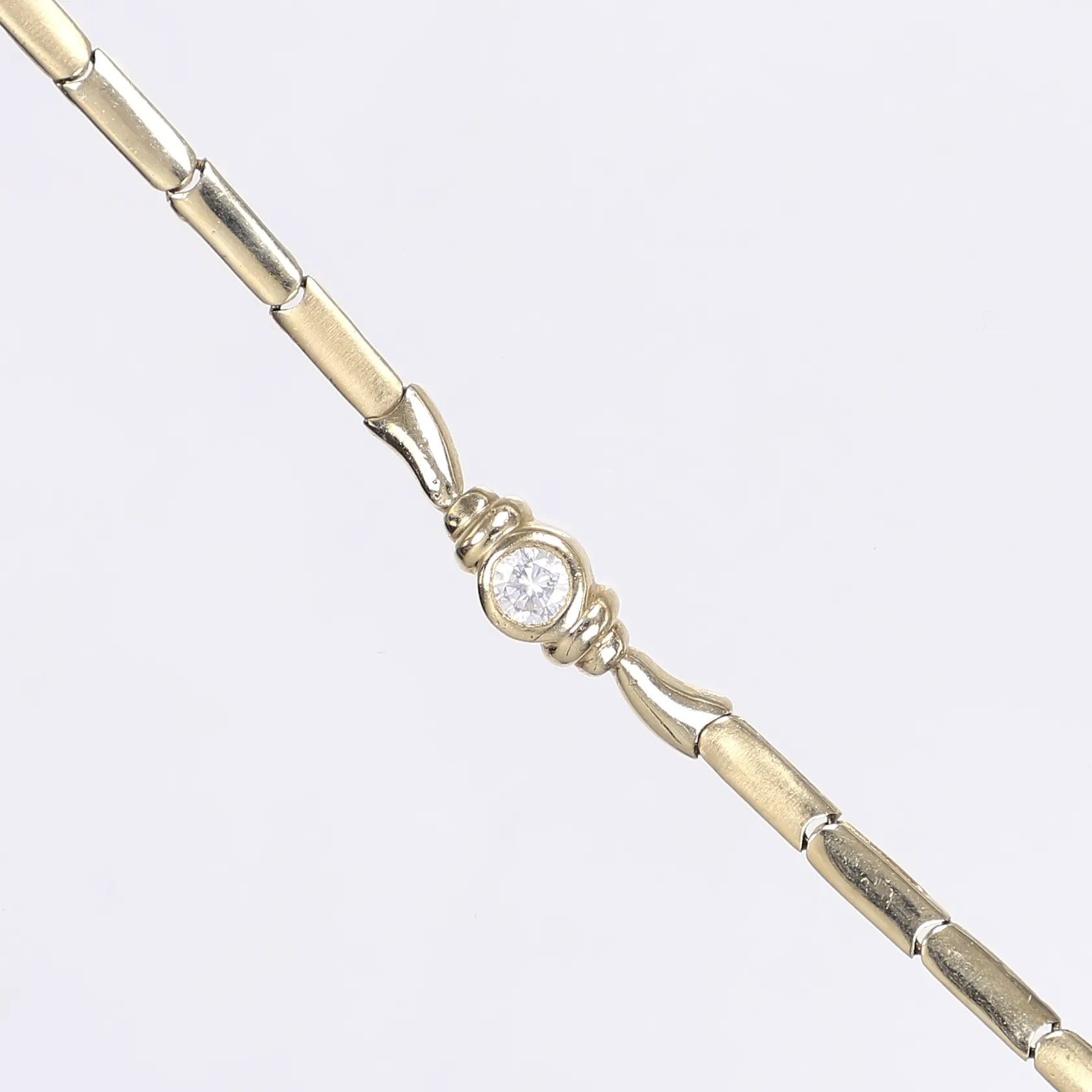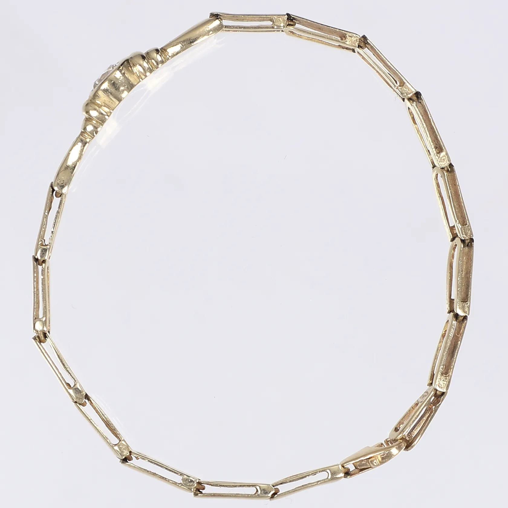 Armband med vit sten, längd 18cm, bredd 4-8mm, 14K Vikt: 9,9 g.