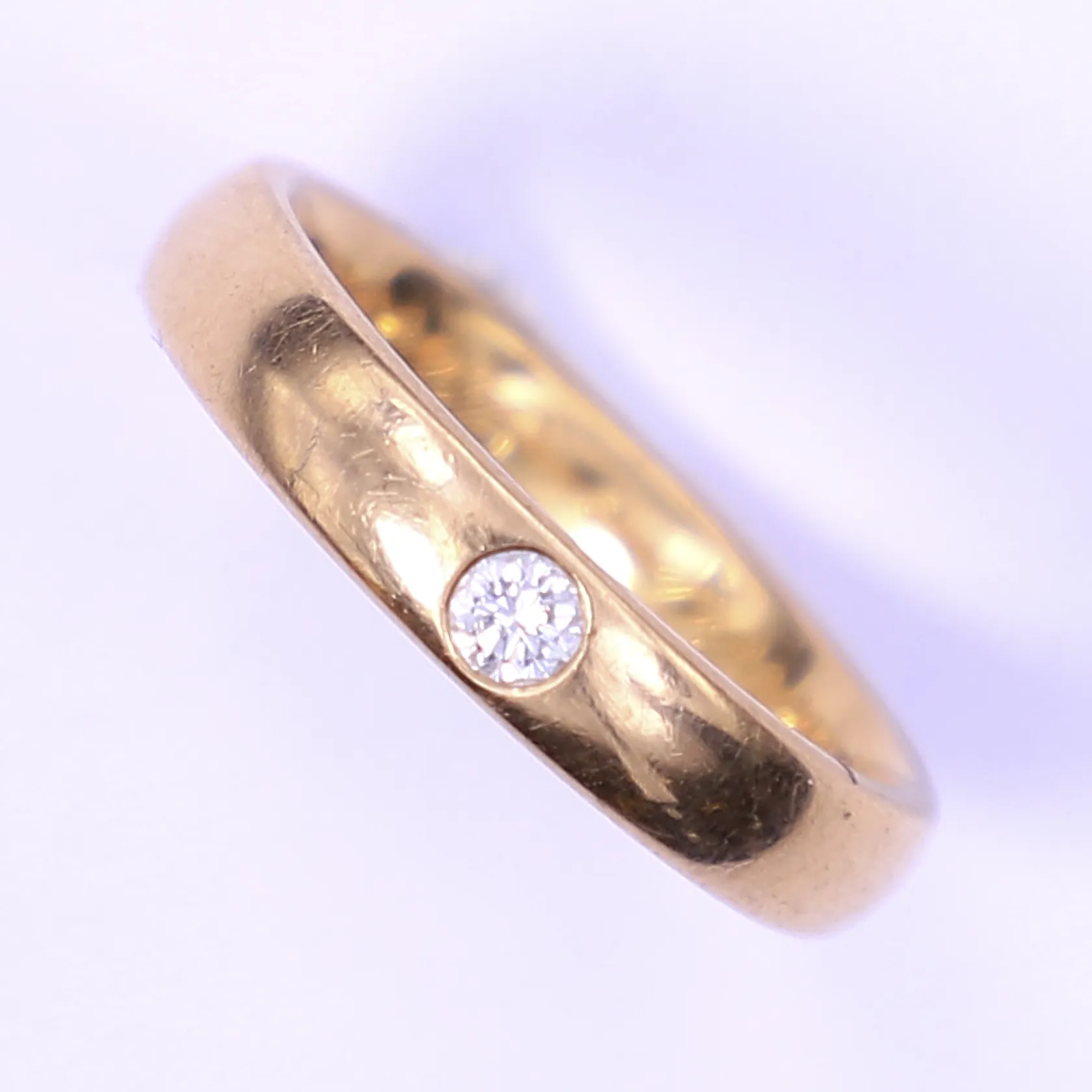 Ring med diamant, totalt ca 0,10ct, stl 17¼, bredd 4mm, gravyr, 18K Vikt: 6 g.