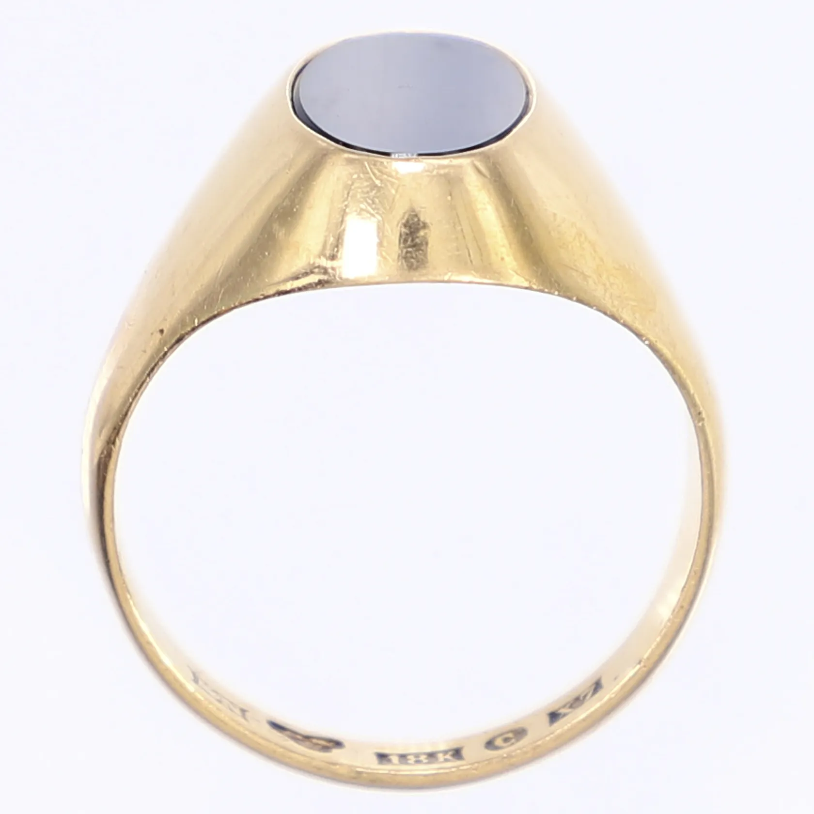 Klackring med svart sten, stl 20¾, bredd 3-17mm, 18K, svenska stämplar Vikt: 6,2 g.