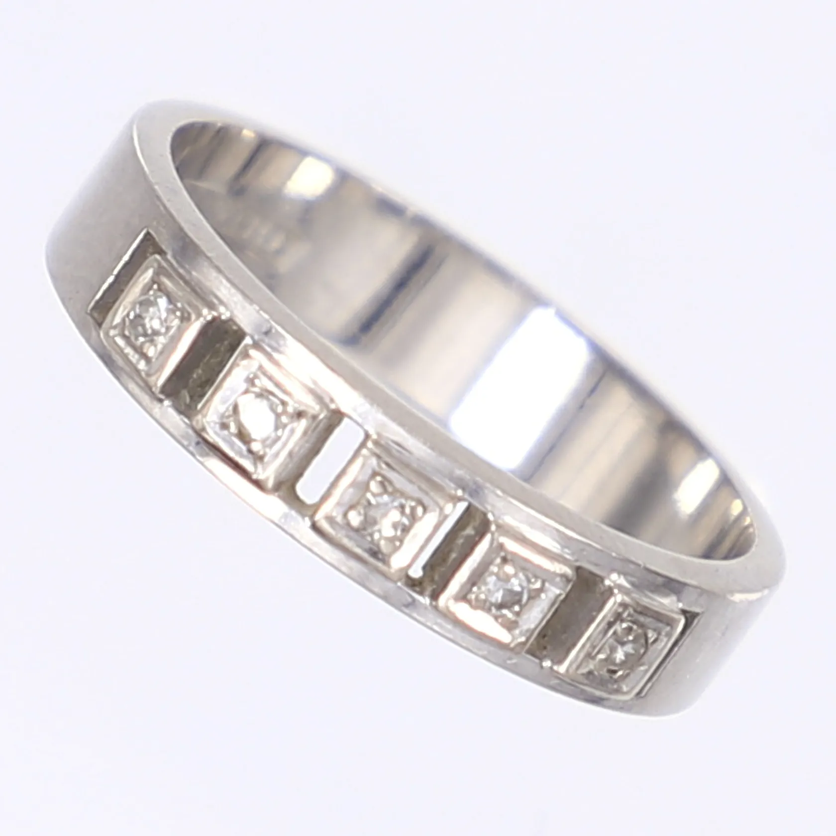Ring med dia 5x0,01ctv enligt gravyr, stl 17½, bredd 4mm, vitguld 18K Vikt: 4,2 g.