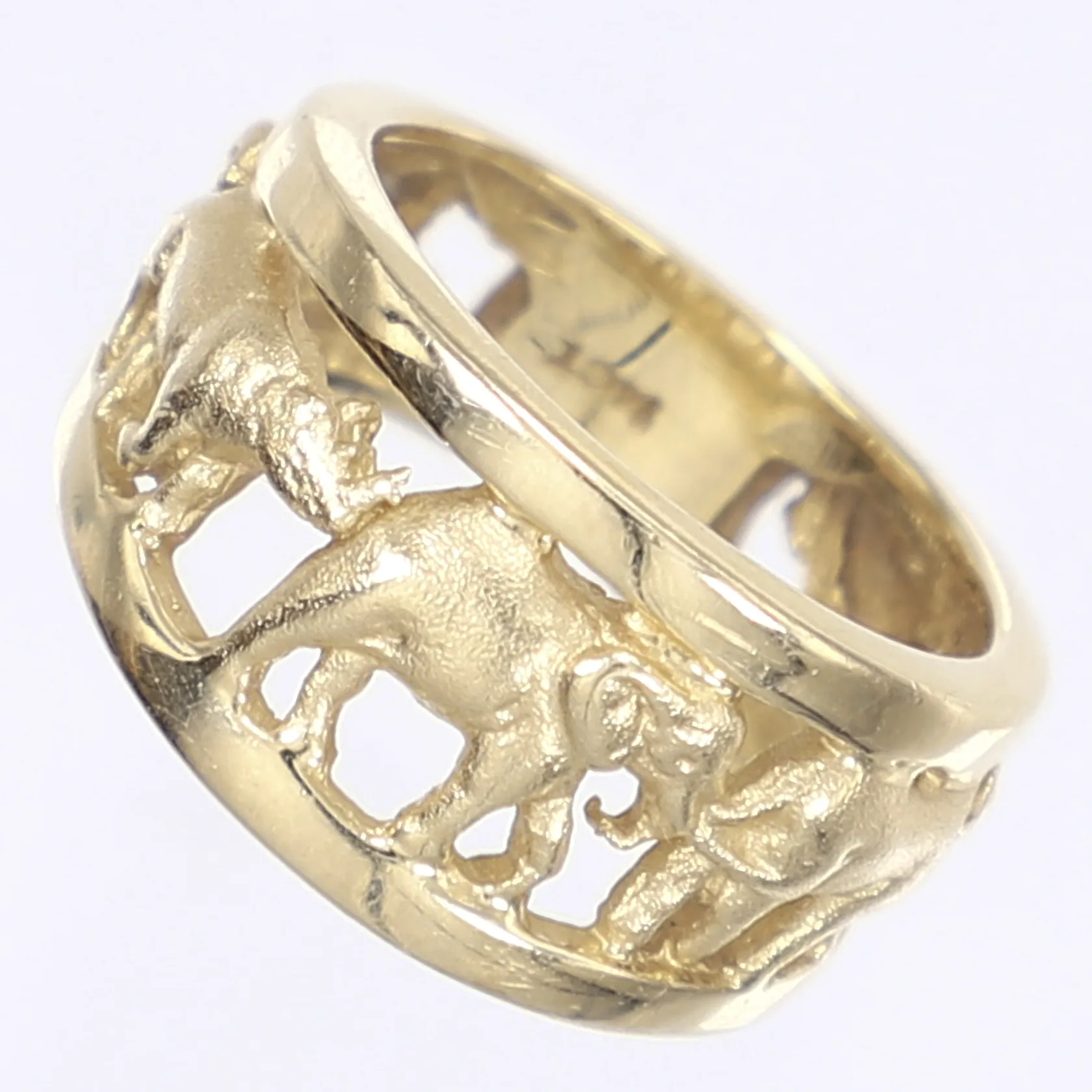 Ring, genombruten dekor i form av djur, stl 18¼, bredd 8-13mm, 14K Vikt: 9,8 g.
