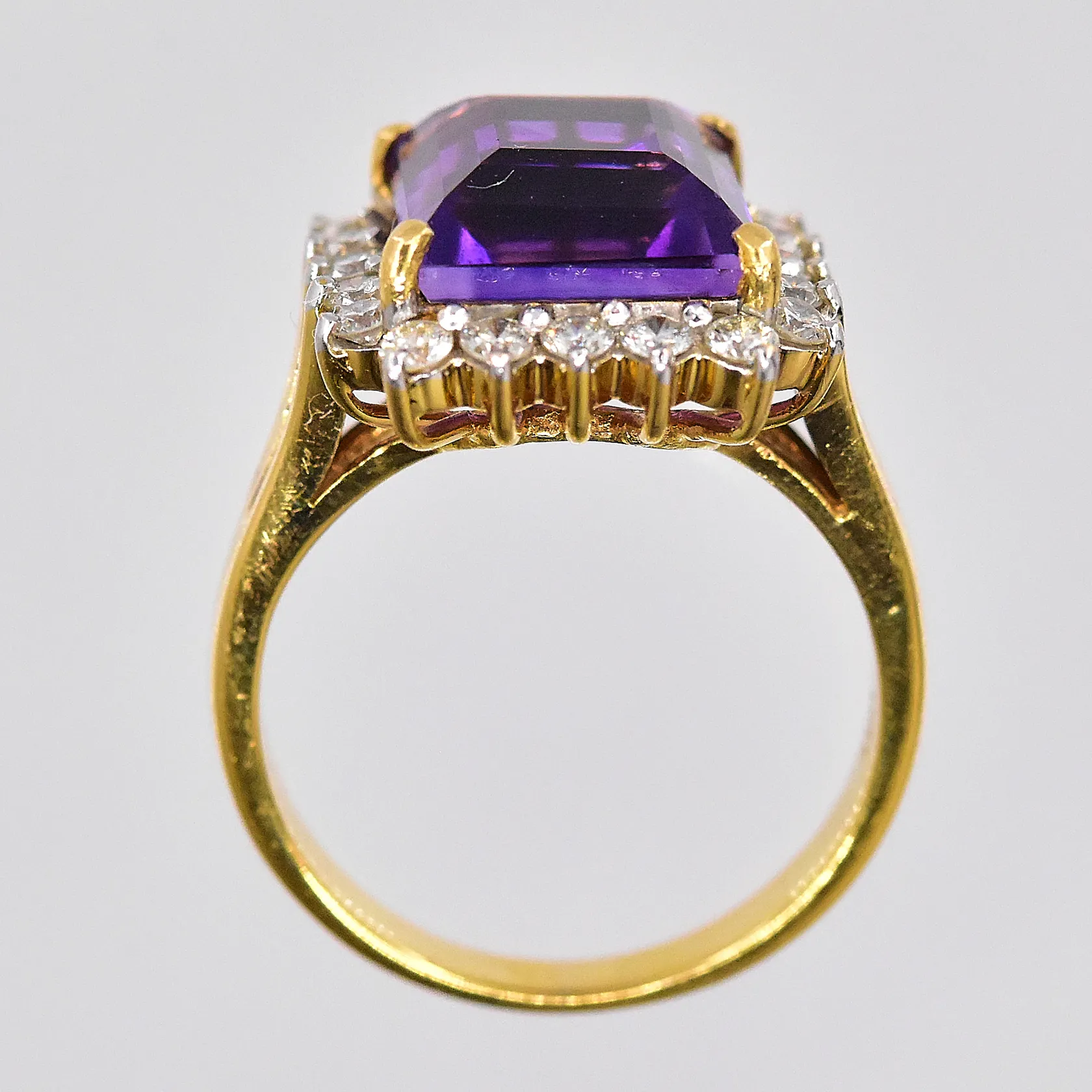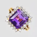 Ring med diamanter ca 20x0,015 samt lila sten, stl 16¼, 18K Vikt: 6,4 g.