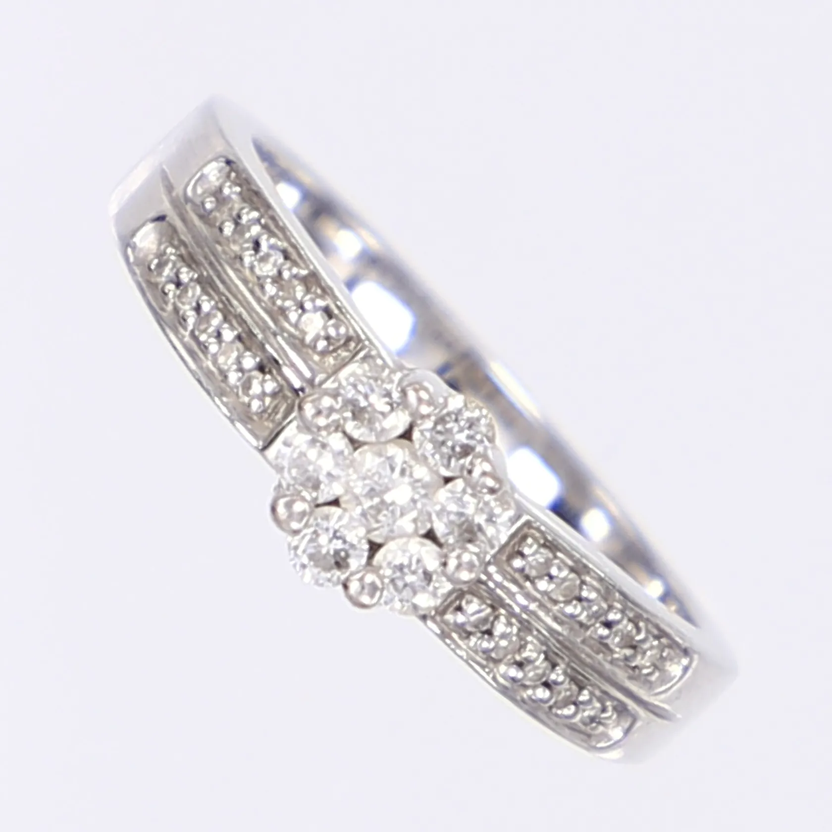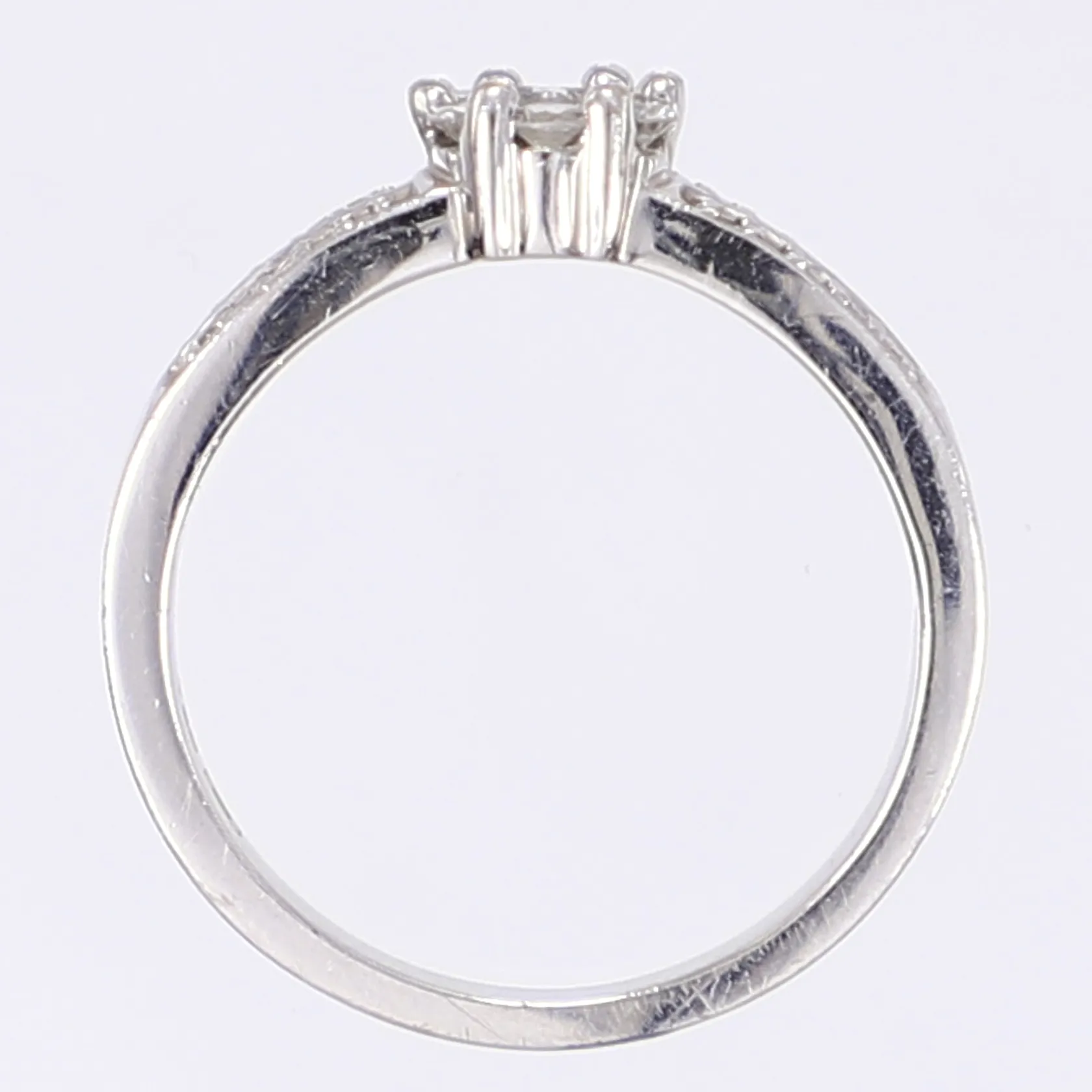 Ring med diamanter totalt ca 0,20ct, stl 15¾, bredd ca 2-5mm, vitguld 18K Vikt: 3,8 g.
