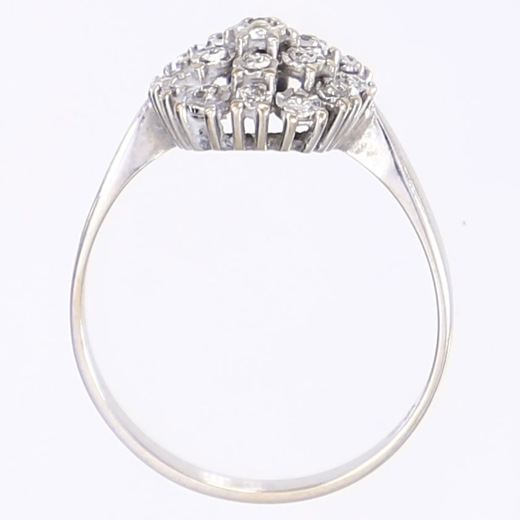 Ring med dia 19x ca 0,005ct, stl 19¾, bredd 2-12mm, vitguld 18K Vikt: 3,5 g.
