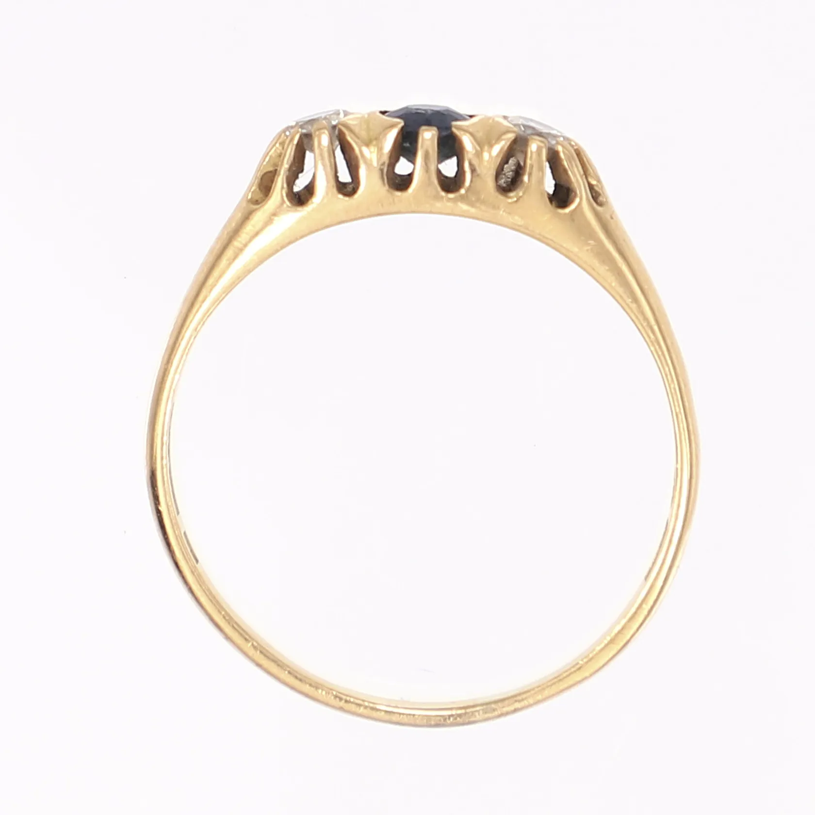 Ring med blå sten samt diamanter totalt 0,010ctv, tillv. G. Dahlberg & Co, stl 18, bredd 2-5mm, gravyr, 18K Vikt: 2,8 g.