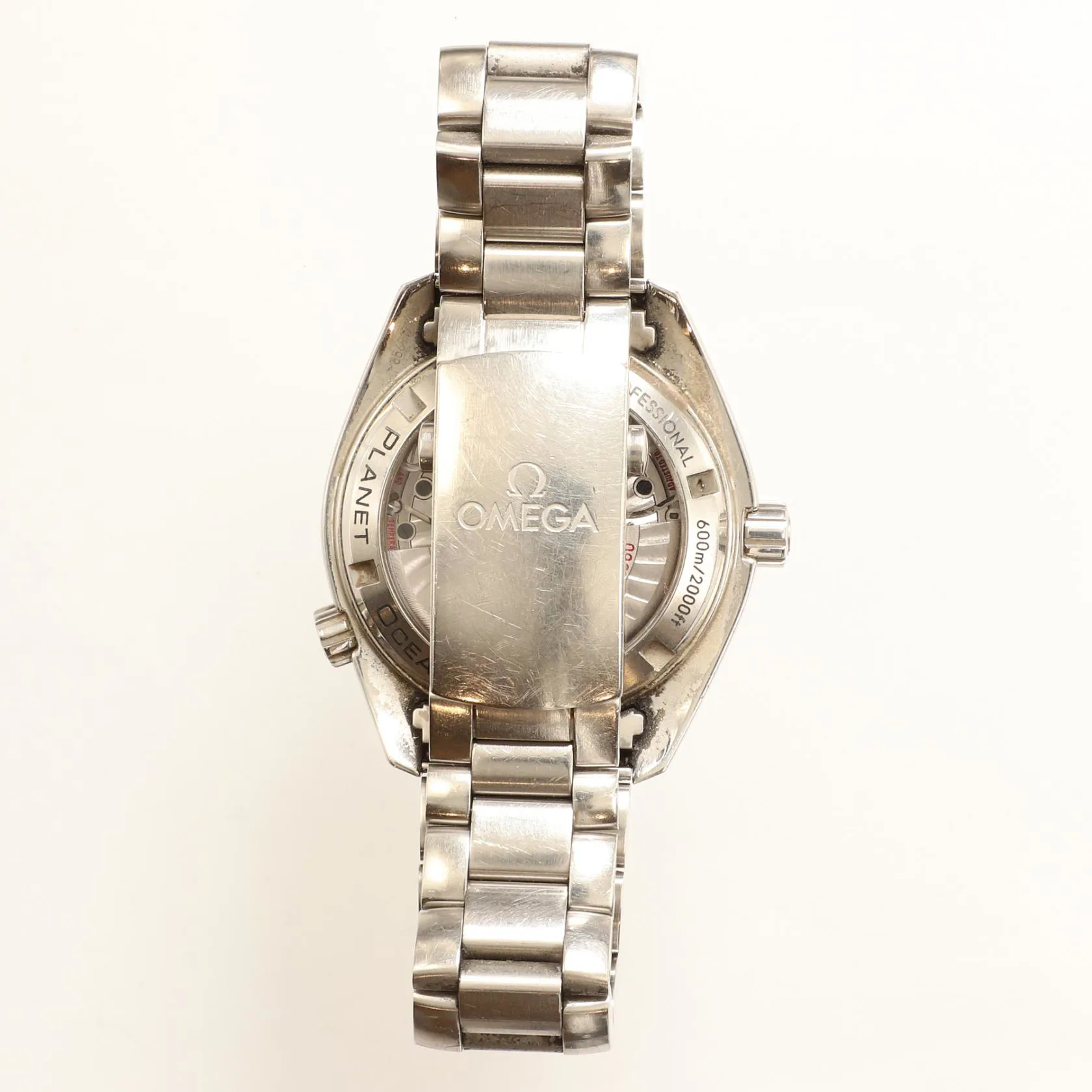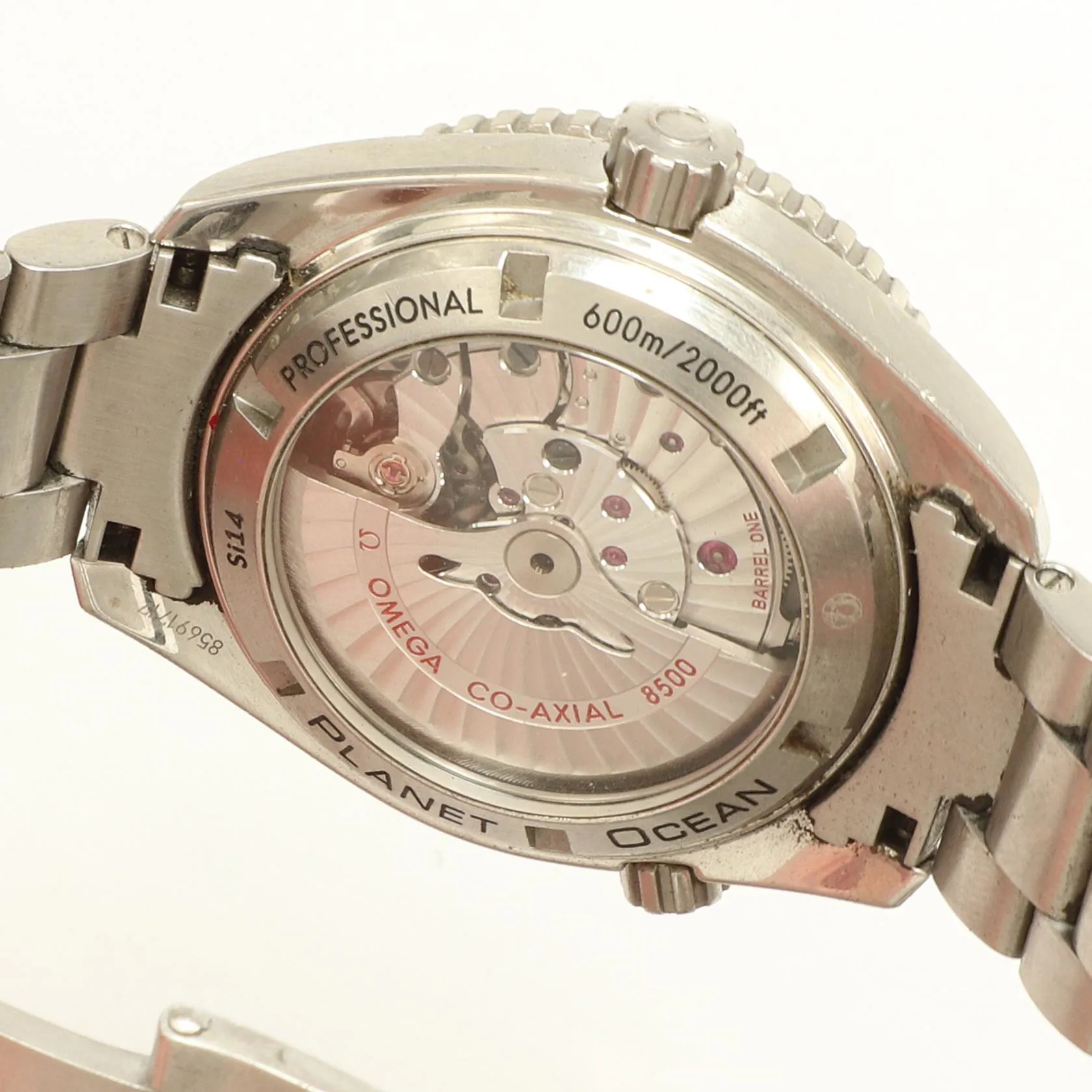 Herrur Omega Seamaster Planet Ocean, stål, automat Co-Axial, cal 8500, 600m/2000ft, ca 42mm, referensnr. 23230422101001, serienr. 85691717, datum, glasbaksida, heliumventil, stållänk med viklås, repor på länk, lås samt boett, 2st extra länkbitar, certifikat Krons ur daterat 31-10-12, pictograms, chronometer certifikat, manual, box och ytterkartong, tidställningen fungerar inte helt, i övrigt håller klockan tiden.