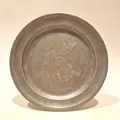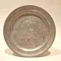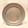 Fyra fat, Firma svenskt tenn, år 1944, Ø17,5cm, gravyrdekor blommor/frukter, gravyr, slitage, repor