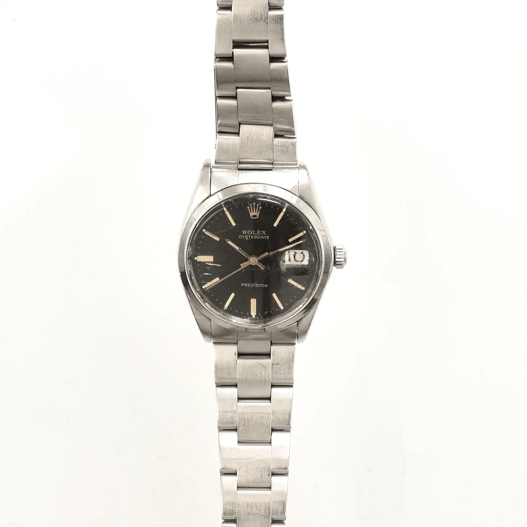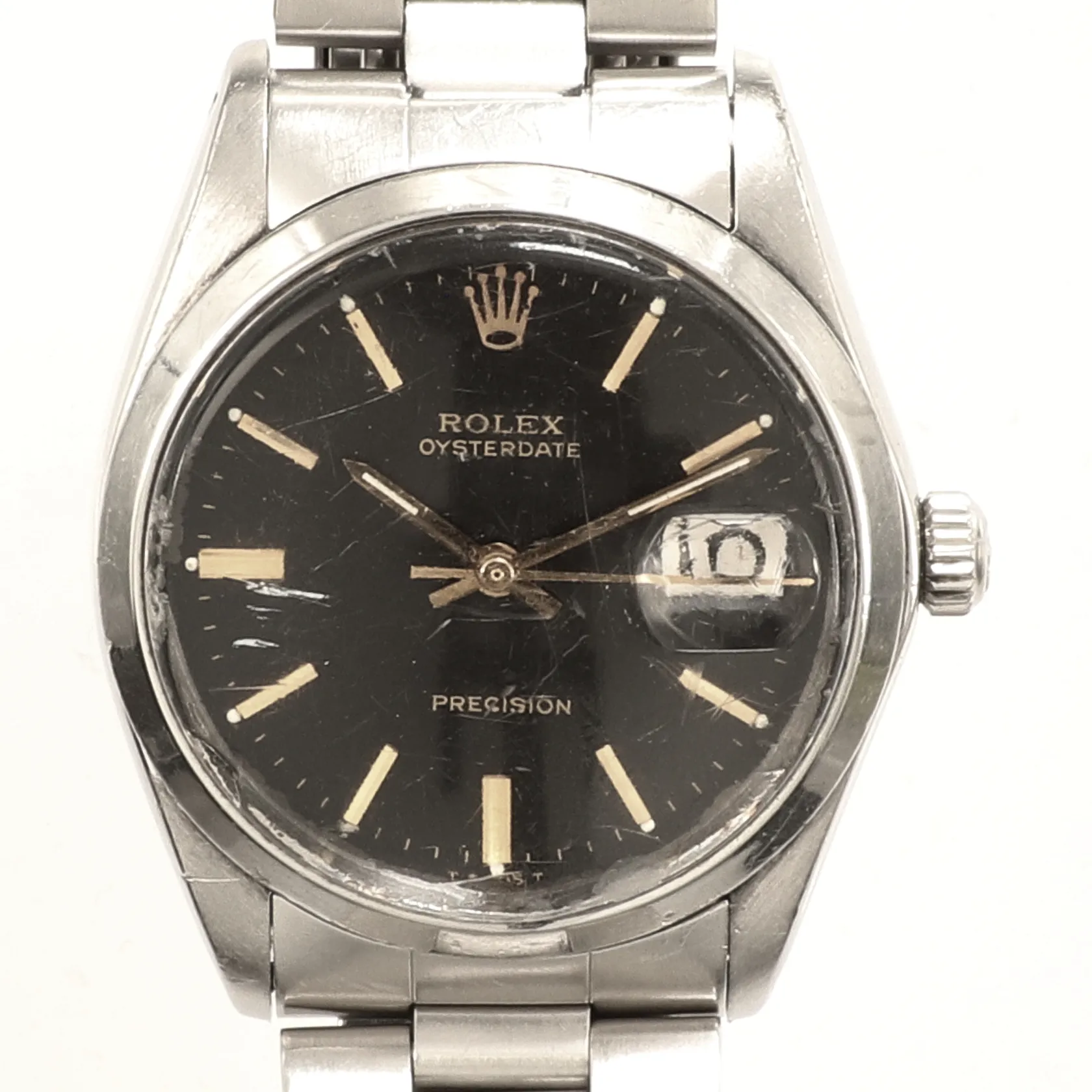 Armbandsur Rolex Oysterdate Precision, stål, manuell, Ø35mm, ref: 6694, snr: 2295292, Cal:1225, verknr: 9181, boettnr: 6694, ca 1970, repig oysterlänk stål, ref: 78350, viklås, längd ca 19,5cm, repigt plexiglas, nagg, packning saknas, servicebehov, inga övriga tillbehör.