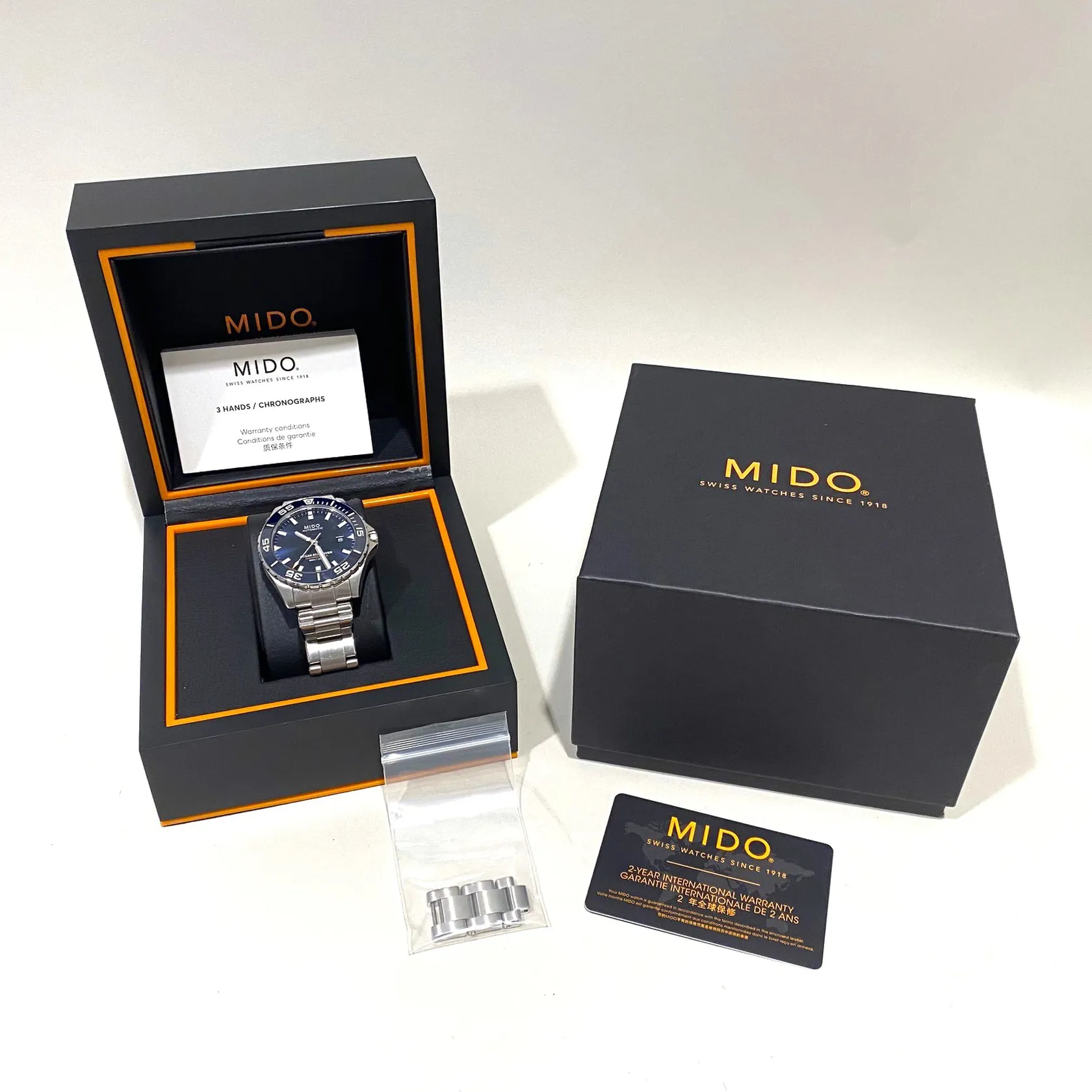 Herrur Mido Ocean Star Diver, Ø 43,5mm, automatisk, datum, refnr: M026608A, serienr: OFTEKMHJR, stållänk, extra länkbitar, viklås, garantikort 21-06-6 Dubai, box, ytterkartong.