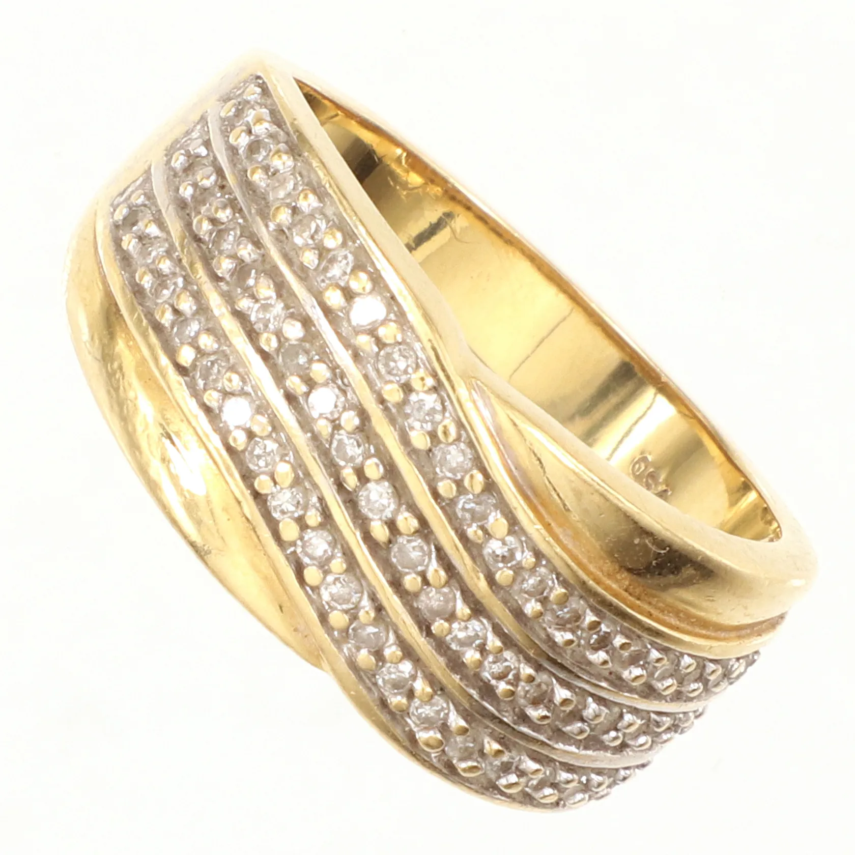 Ring med diamanter ca 57x0,004ct, 0,25ct, enligt gravyr Guldfynd, stl 16, bredd ca 8,6mm, 18K Vikt: 5,7 g.