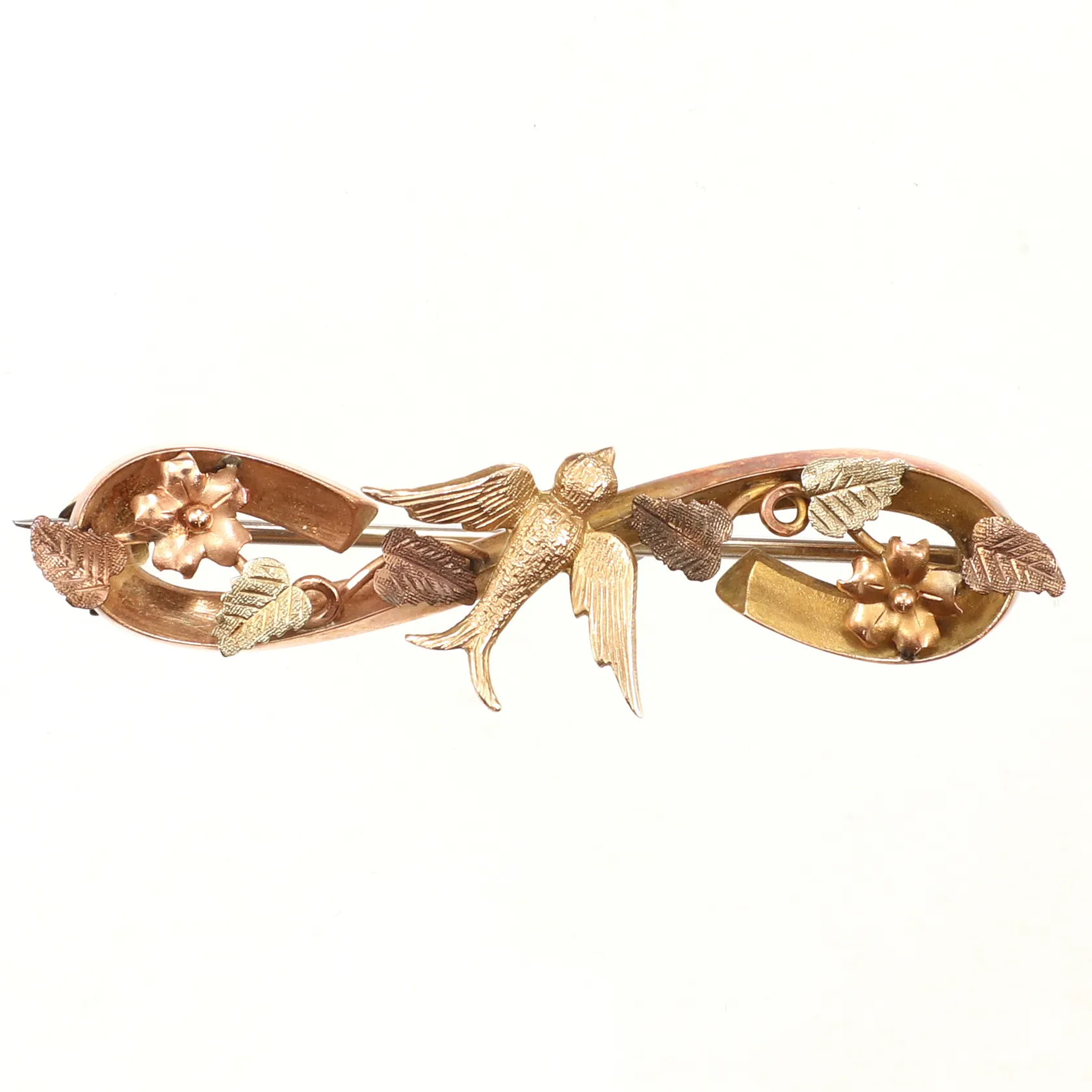 Brosch, tillverkad av Clewley & co, Birmingham år 1906, längd ca 45mm, bredd ca 9mm, nål i metall, bruttovikt: 2,8g, 9K Vikt: 2,8 g.