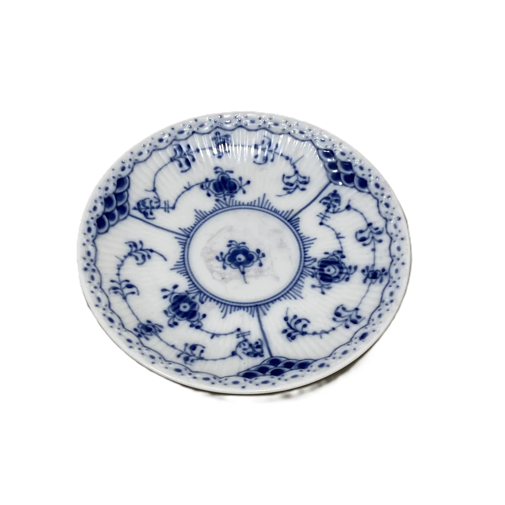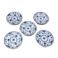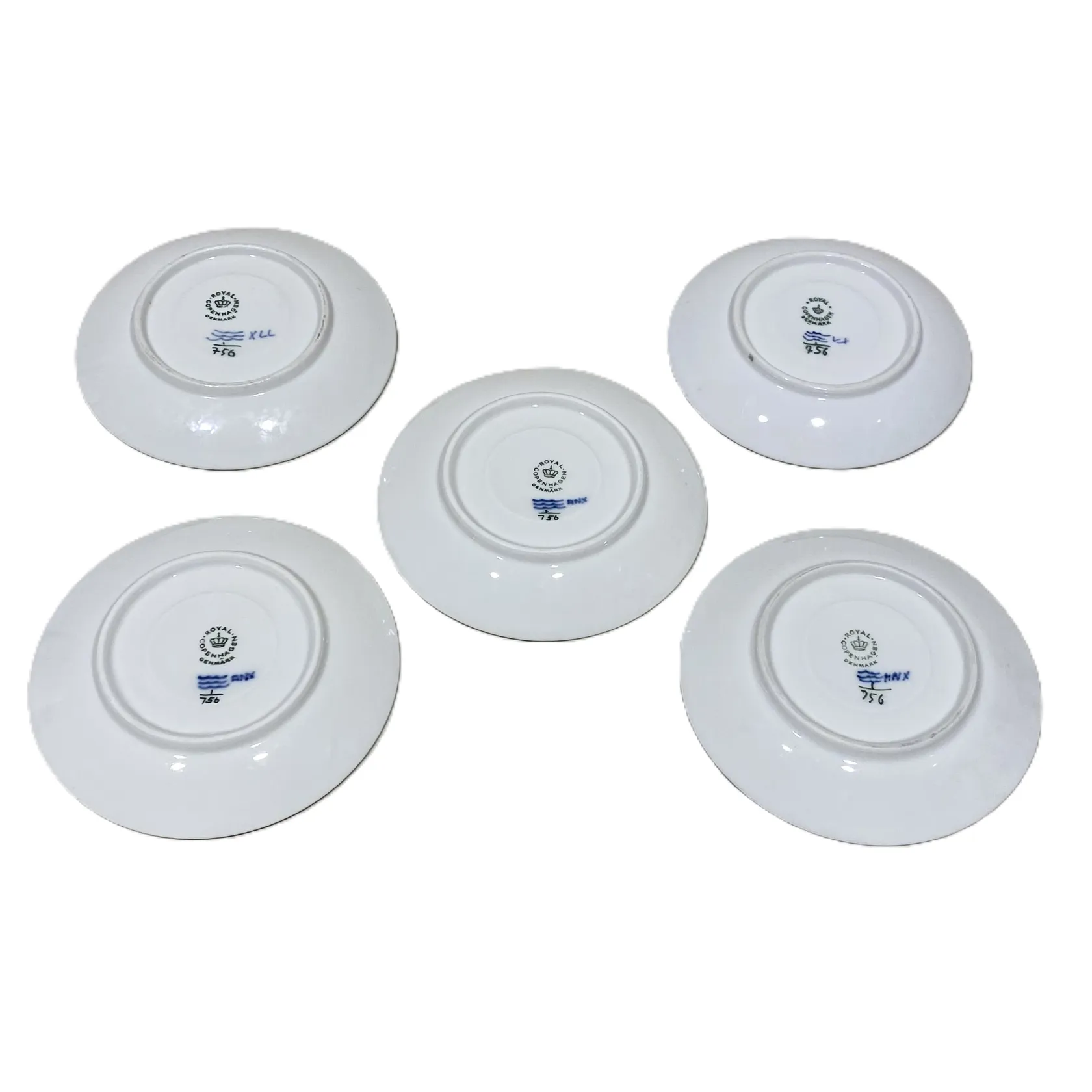 Fem fat, Ø13cm, Nr 756, Musselmalet, Royal Copenhagen Denmark, varav en med fläckar, Skickas med postpaket.