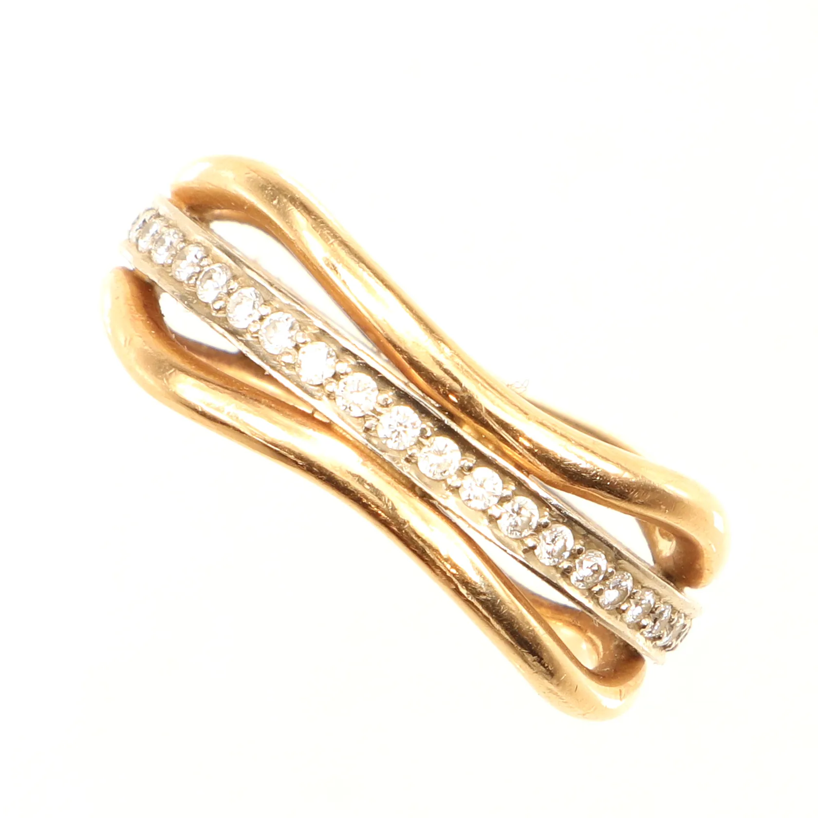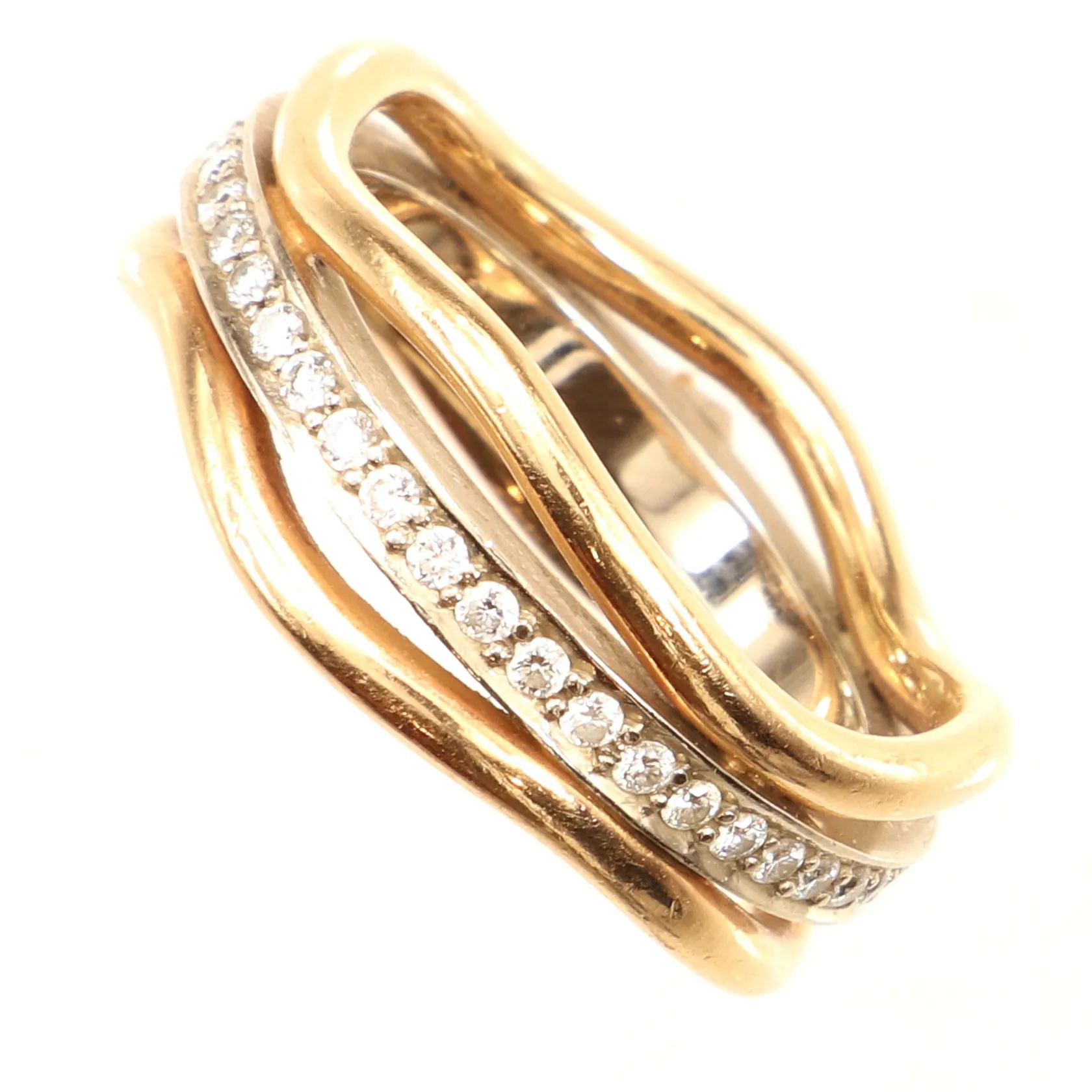 Alliansring diamanter ca 44 x ca 0,01ct, stl 17¼, bredd 6-8mm, 14K Vikt: 7,5 g.