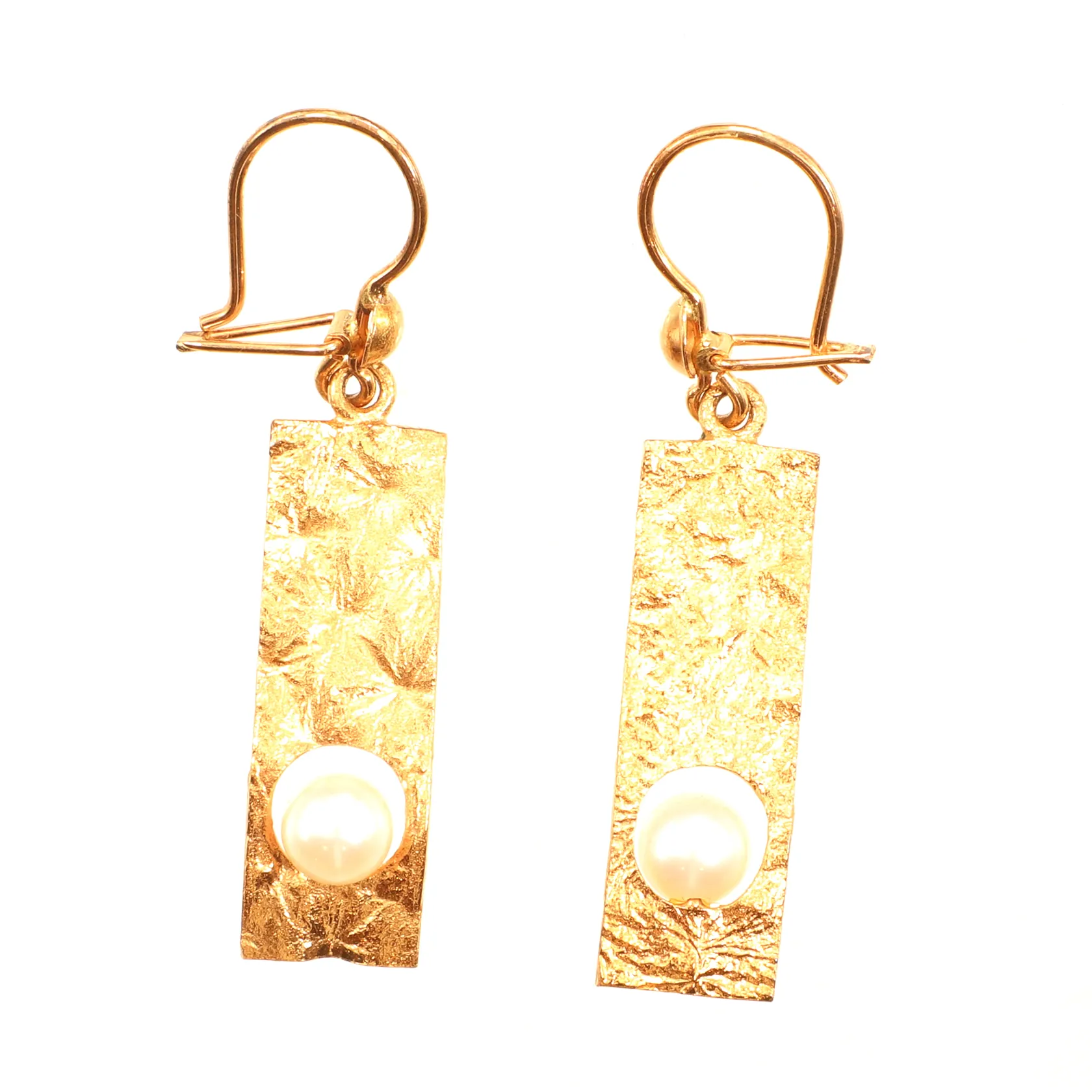 Ett par örhängen, längd 40mm, bredd 8,7mm, pärla 18K Vikt: 5,3 g.