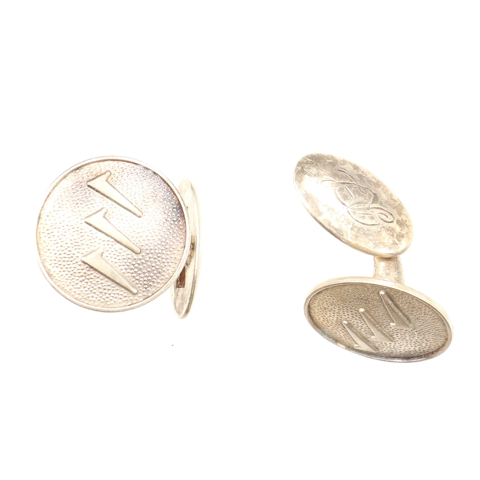 Ett par manschettknappar, dekor i relief, monogramgravyr, Kultakeskus Oy Finland, 813/1000 silver Vikt: 12,2 g.
