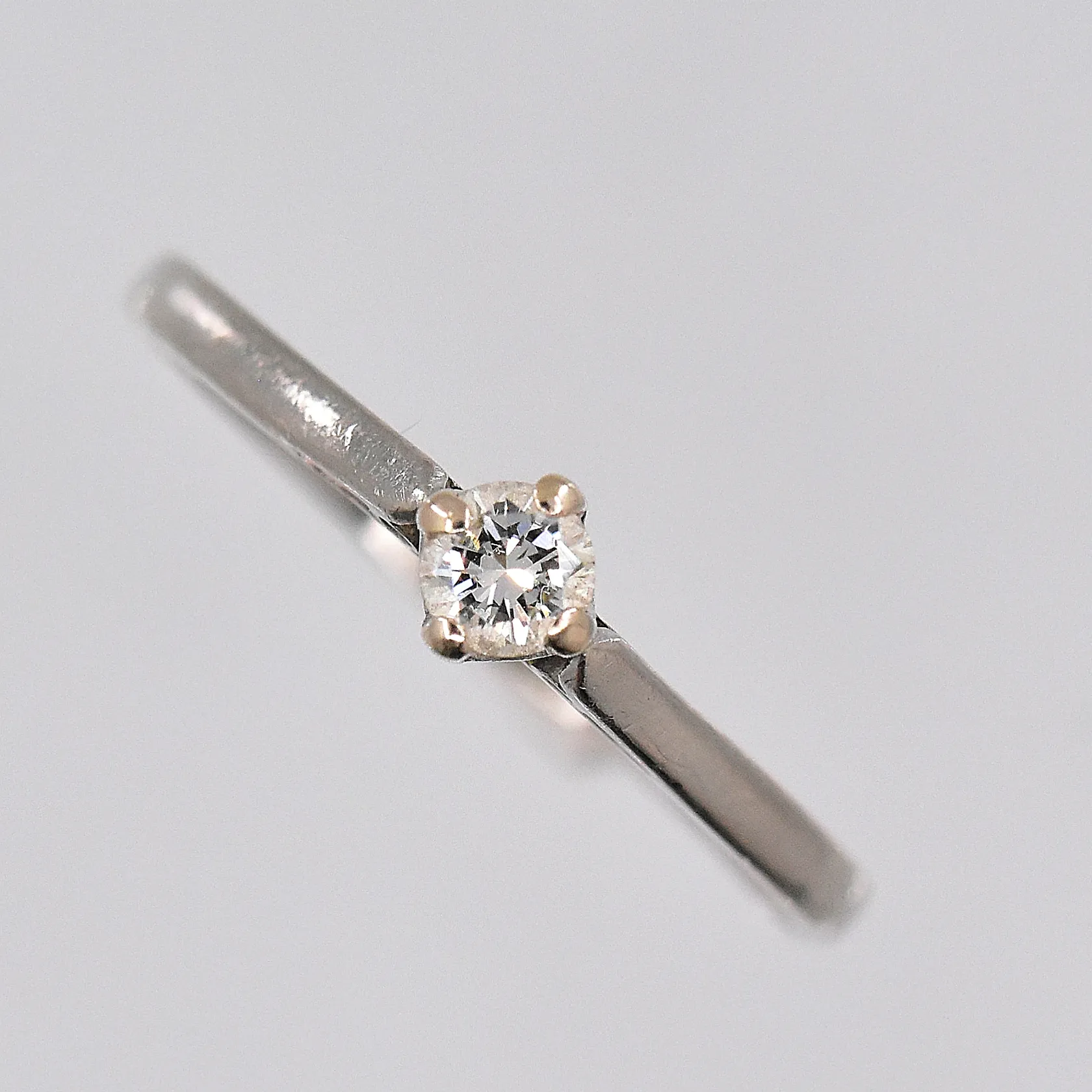 Ring vitguld, diamant 0,16ct enligt gravyr, stl 18, sliten skena, 18K Vikt: 1,8 g.