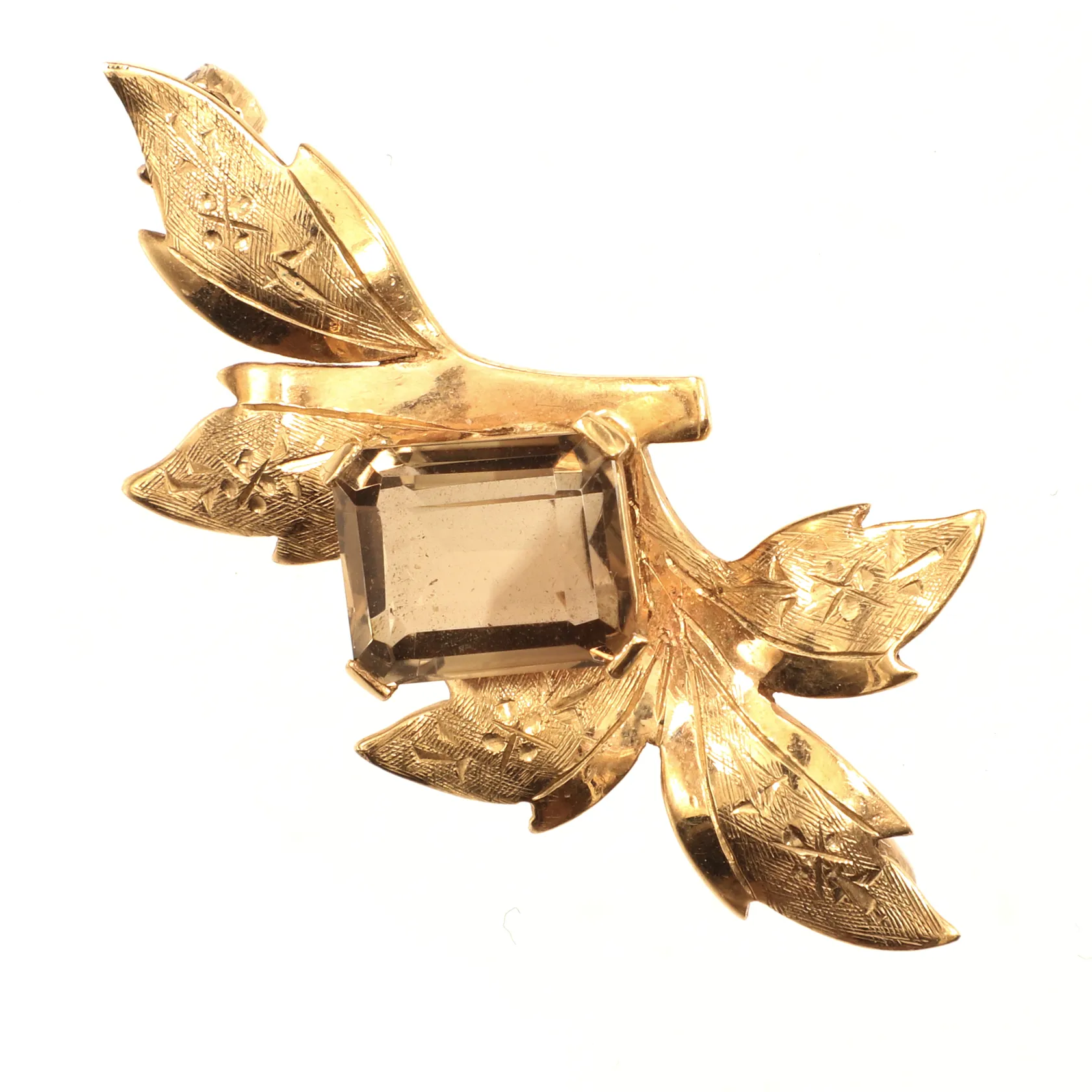 Brosch, rökkvarts, längd 44mm, bredd 18mm, 9K Vikt: 5,9 g.