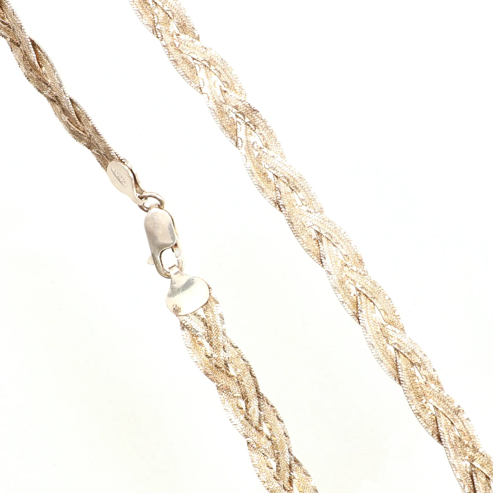 Collier flätat, längd 43cm, bredd ca 8mm, 925/1000 silver Vikt: 18,1 g.