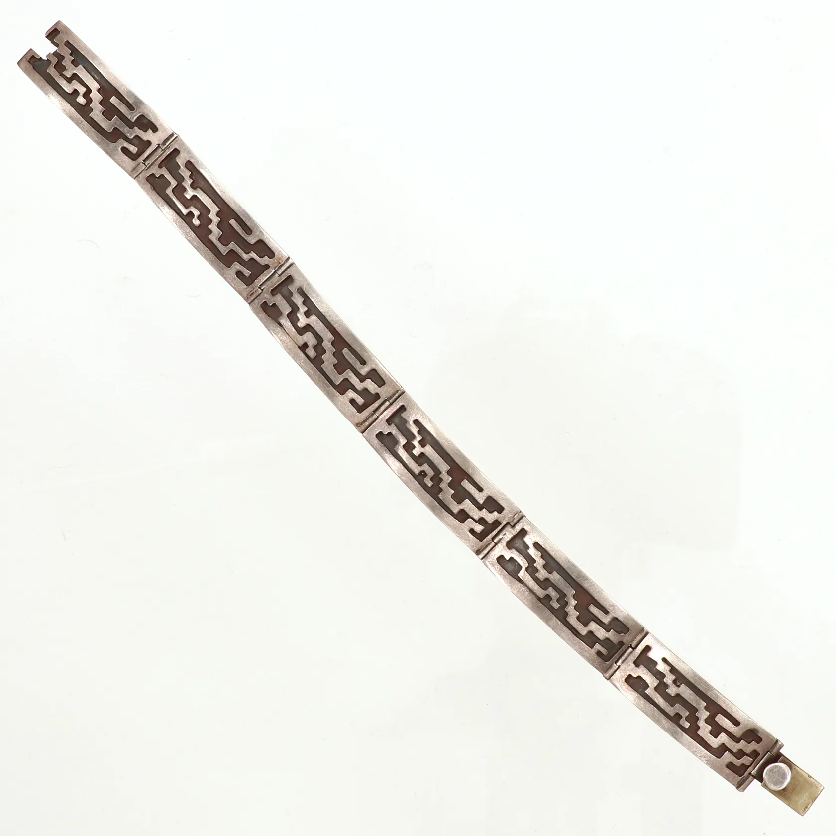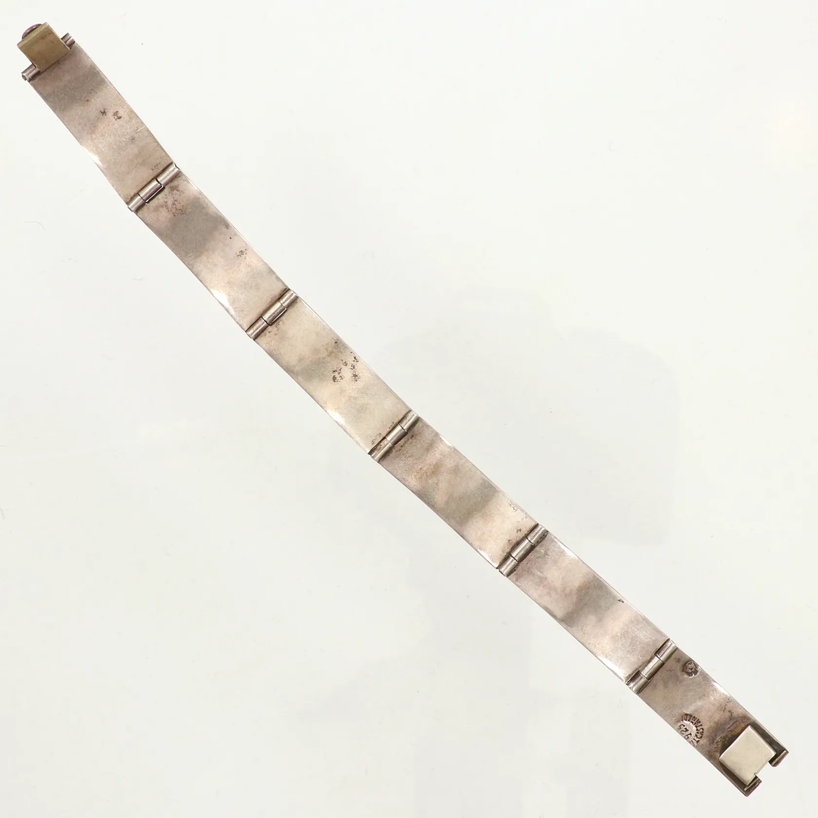 Armband halvstelt med dekor i relief, längd ca 18cm, bredd ca 11mm, Mexico, 925/1000 silver Vikt: 20,7 g.