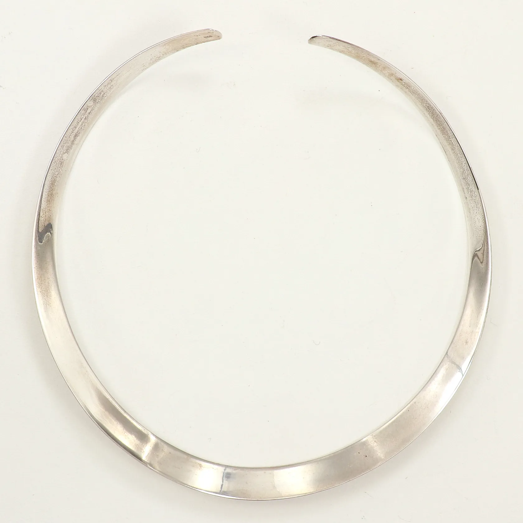 Collier, stelt, Ø ca 6-12cm, innermått ca 6-11cm, bredd ca 8-10mm, repigt, 925/1000 silver Vikt: 26,8 g.
