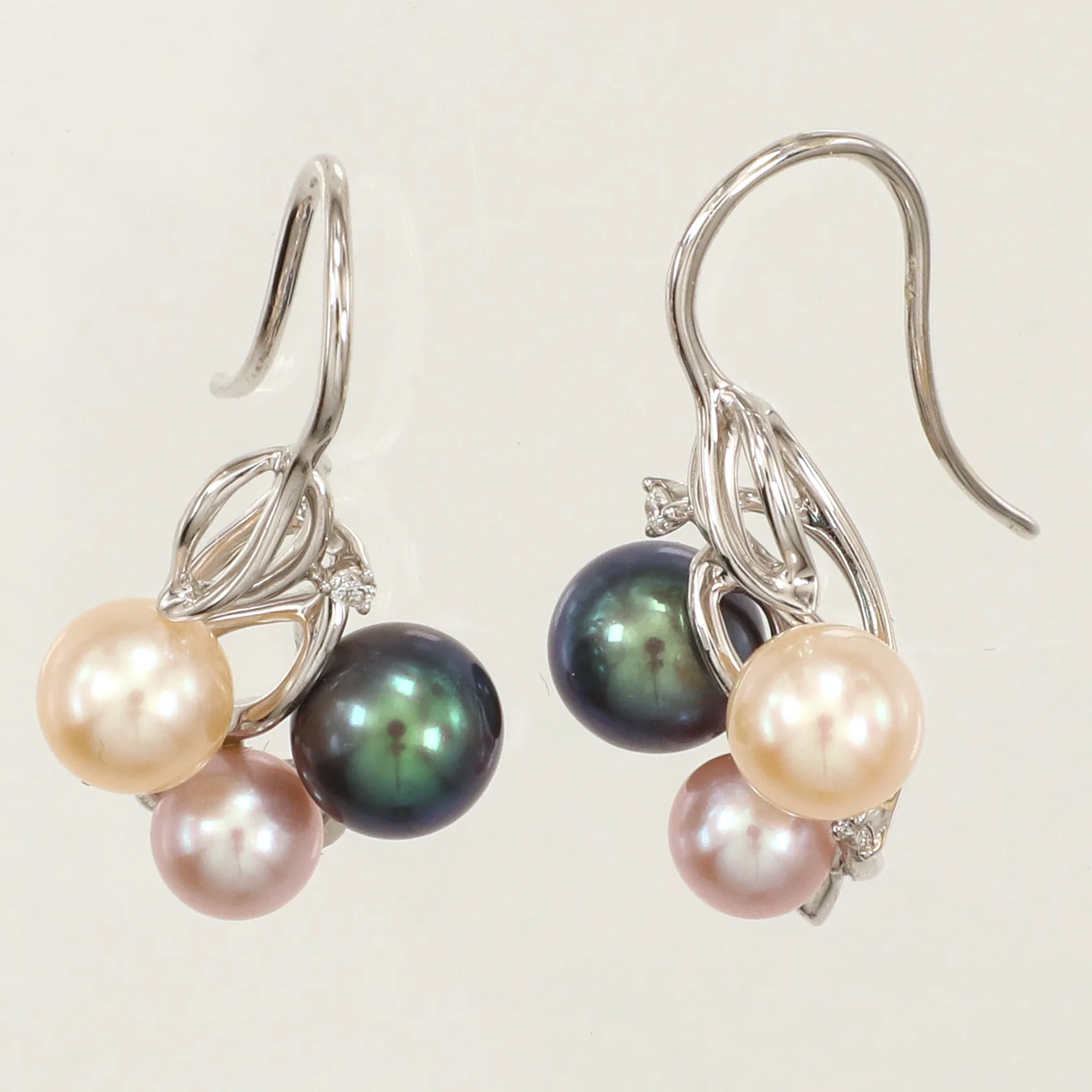 Ett par örhängen med imitationspärlor och diamanter ca 4 x 0,01ct, vitguld, längd ca 28mm, bredd ca 15mm, 18K Vikt: 5,5 g.