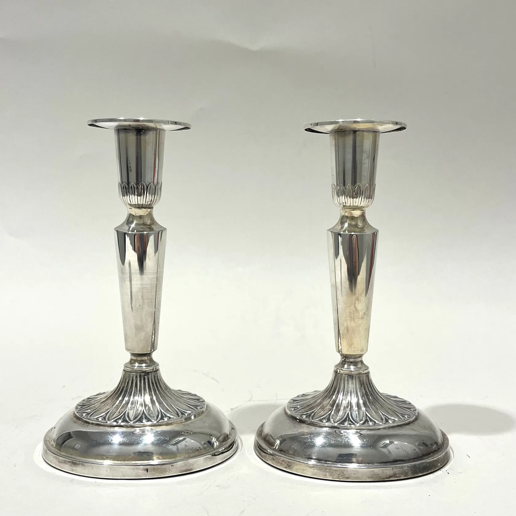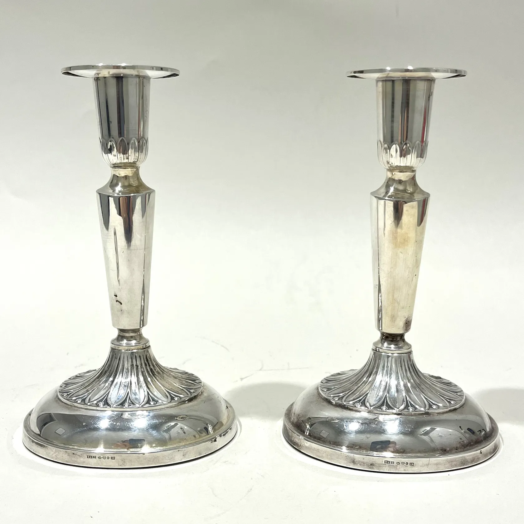 Ett par ljusstakar på oval fot, organisk dekor, höjd ca 15cm, bredd ca 9,5cm, Ceson Guldvaru Ab år 1968, fyllda, repor, stearinrester, 830/1000 silver Bruttovikt 414,1g. Vikt: 414,1 g.