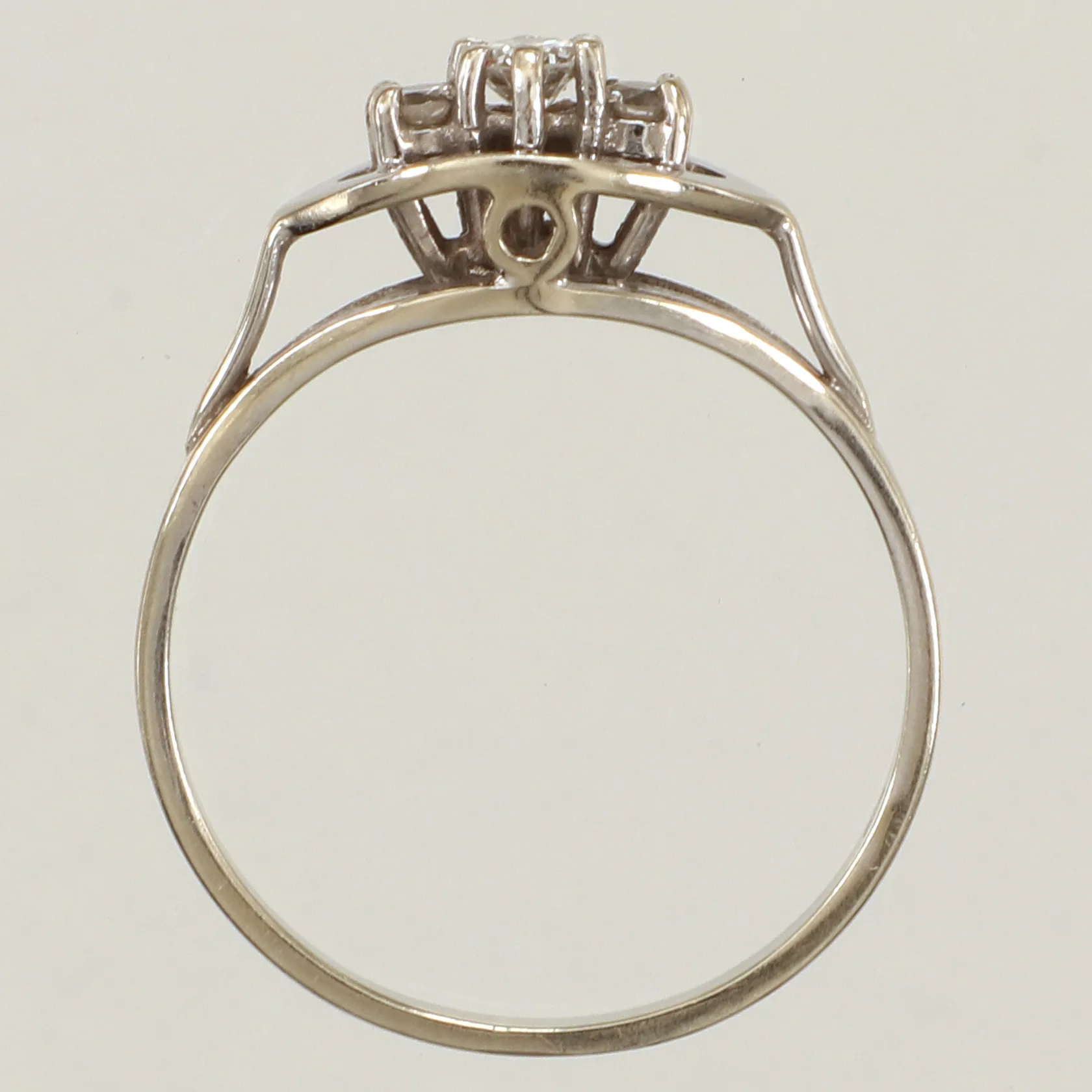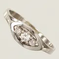 Ring diamanter 1x ca 0,07ct, 2 x ca 0,02ct, stl 16, bredd 5,5mm, vitguld, 18K Vikt: 2 g.