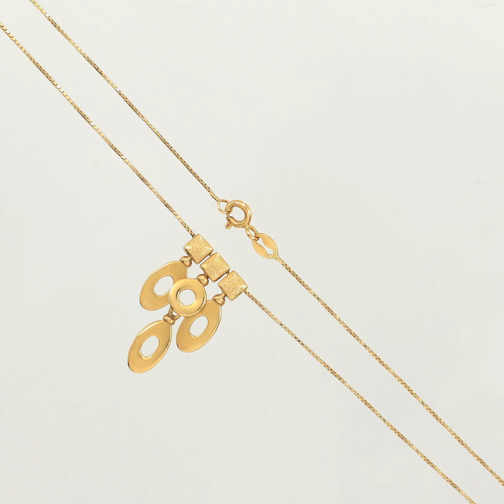 Collier med integrerade hängen, längd 43cm, bredd ca 1-24mm, ojämn länk, Guldfynd, 18K Vikt: 4,5 g.
