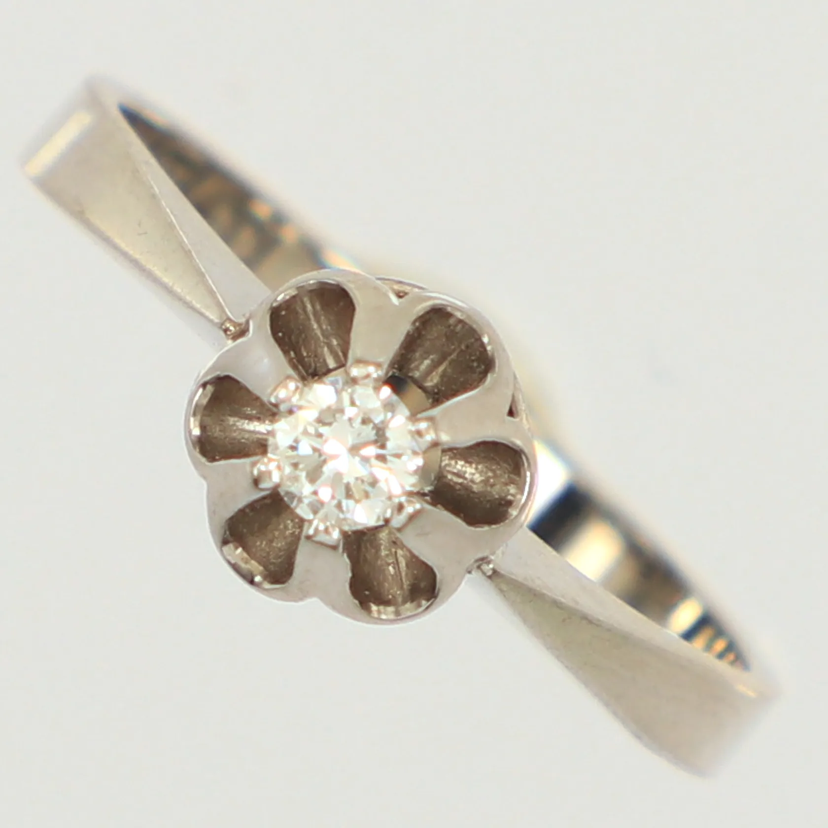 Ring, diamant ca 0,10ct, stl 16¼, bredd 6,7mm, vitguld, 18K Vikt: 2,8 g.