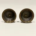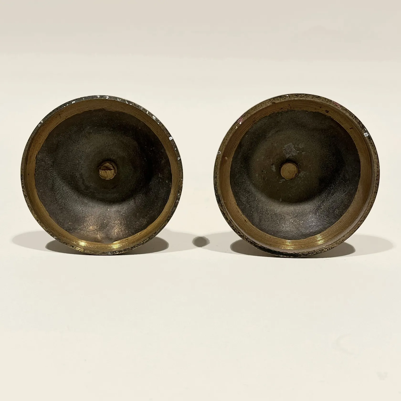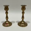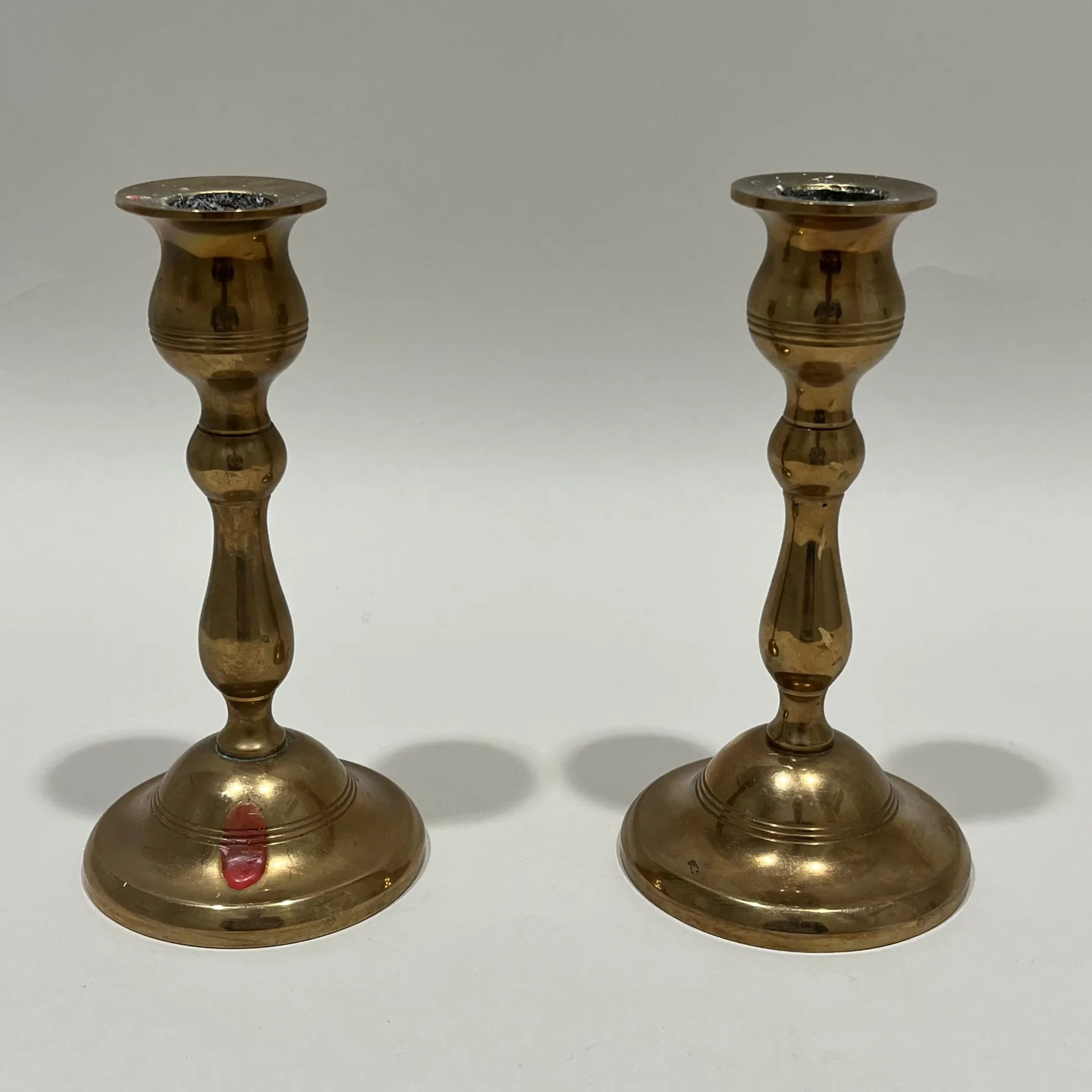 Ett par ljusstakar, mässing, höjd ca 14cm, stearinrester