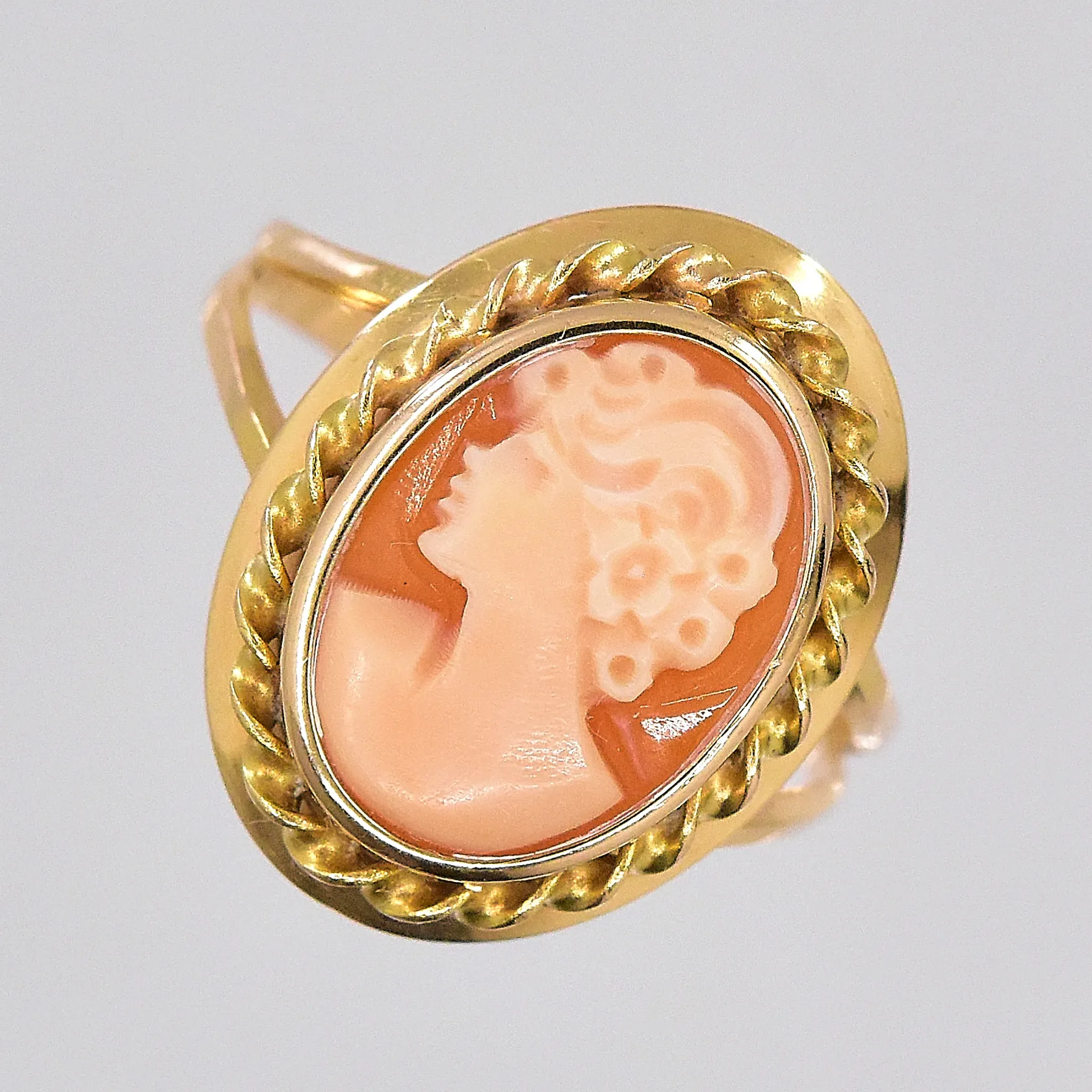 Ring med camé, stl 17¼, camé 18x14mm, 18K Vikt: 2,7 g.