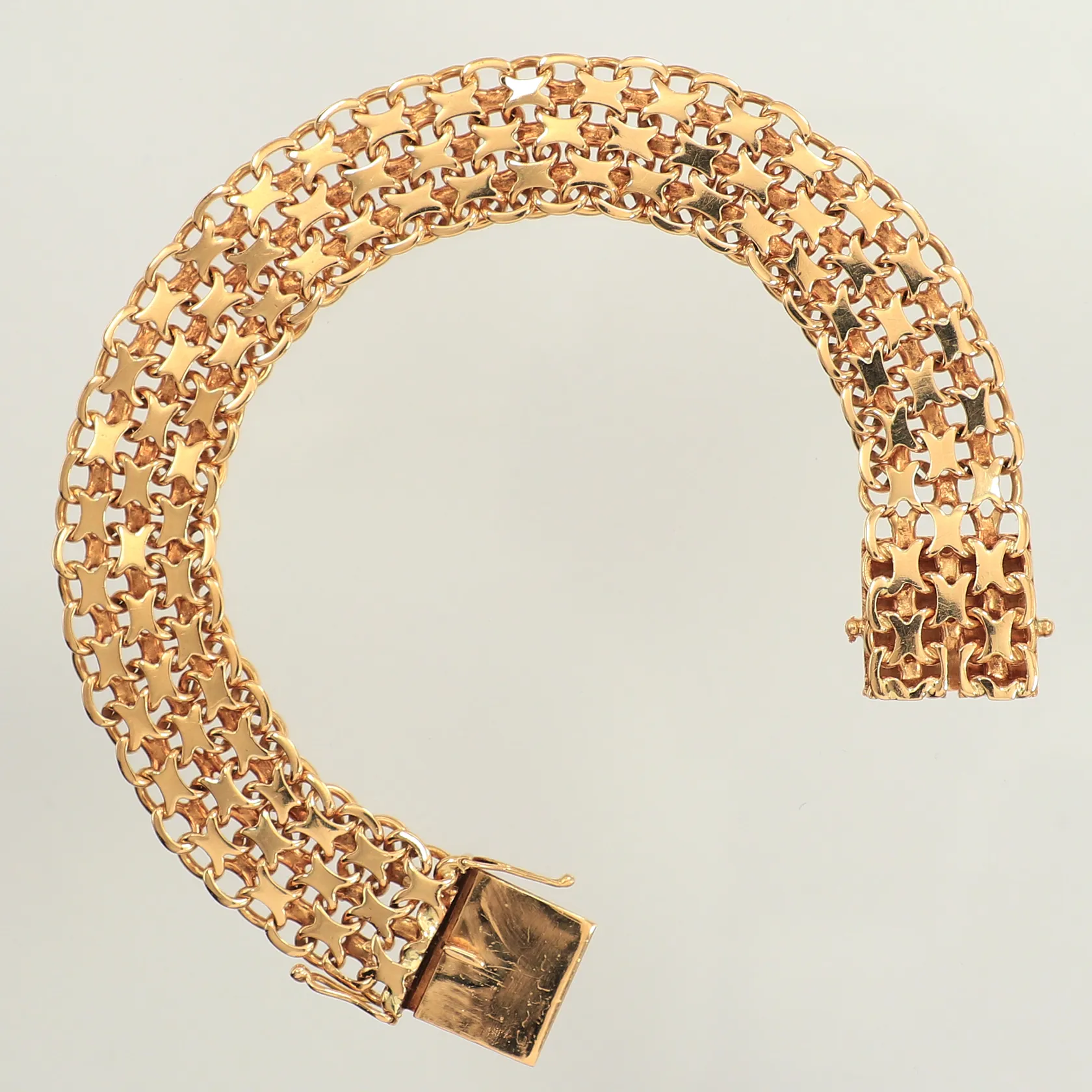 Armband X-länk, längd 18cm, bredd 13,7mm, Hedens Guldsmeds Ab Bröderna, år 1963, 18K Vikt: 28,5 g.