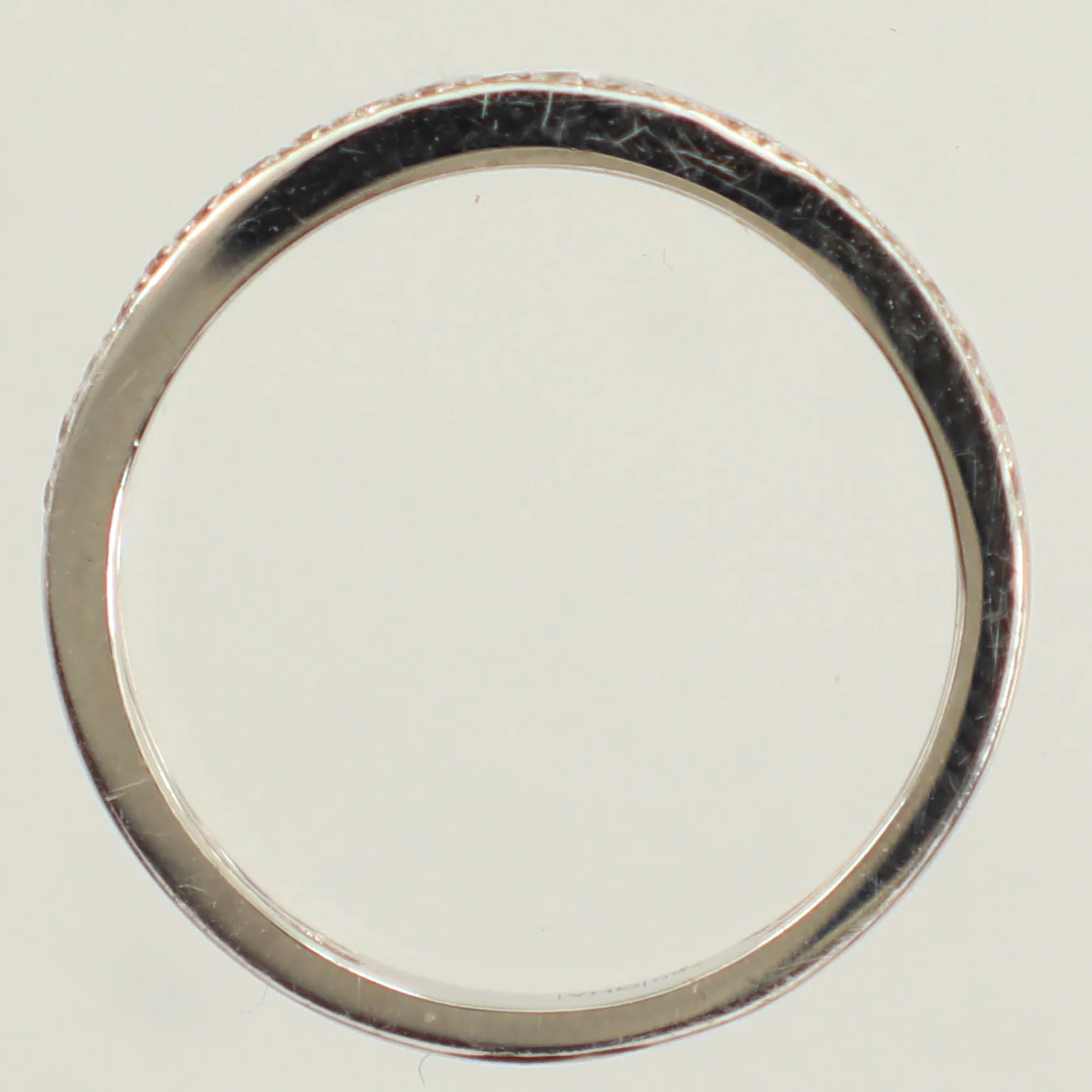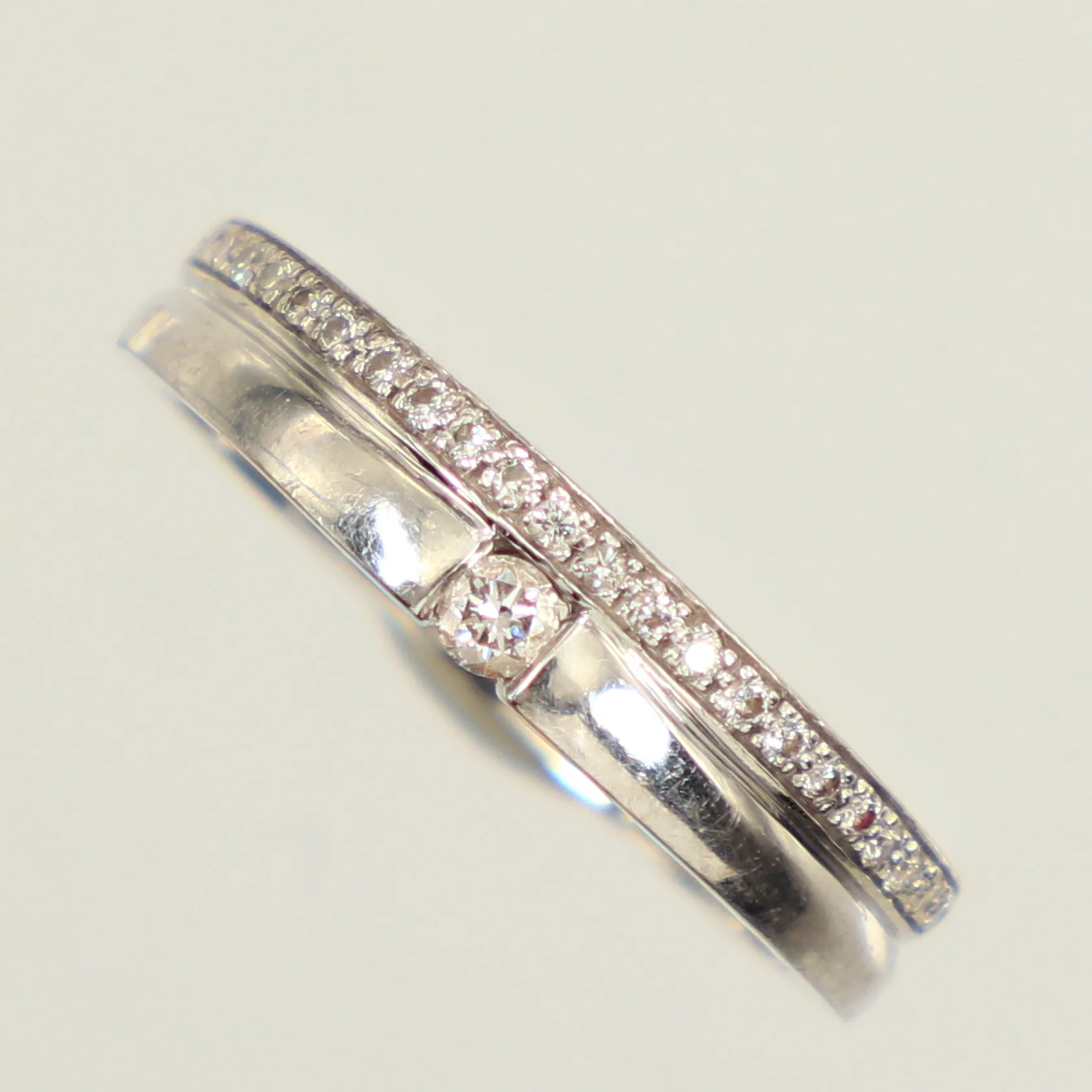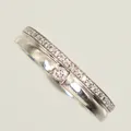 Ring med diamanter 1x ca 0,03ct, 22x ca 0,005ct, stl 15, bredd 2,7-3,6mm, GHA, vitguld, 18K Vikt: 2,6 g.
