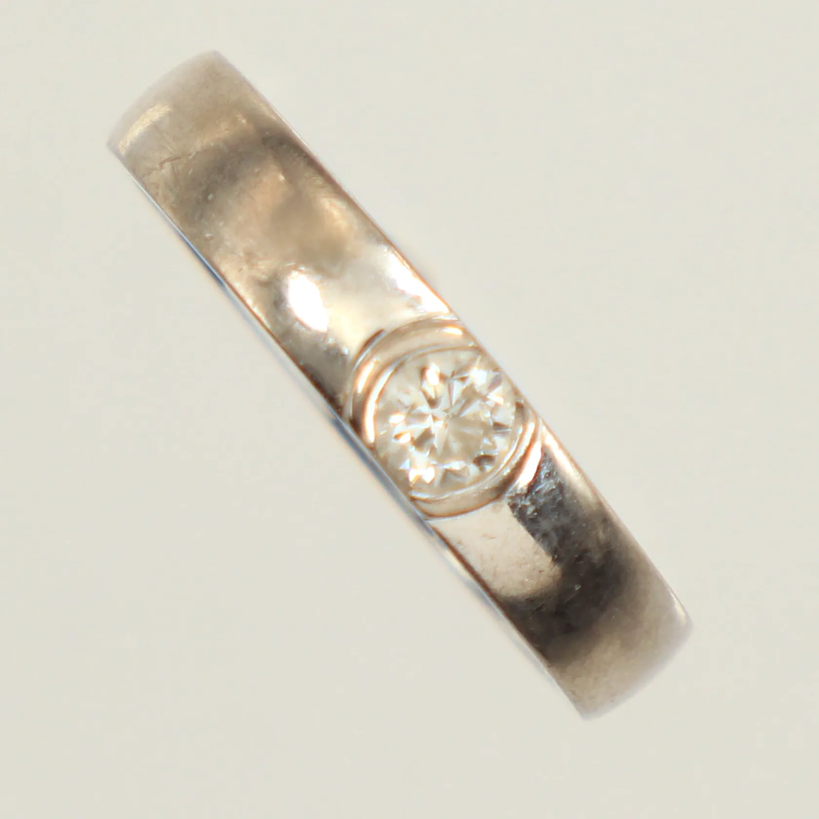 Ring med diamant ca 0,15ct enligt gravyr, stl 15¼, bredd 3,5mm, gravyr, repig, GHA, vitguld, 18K Vikt: 4,5 g.