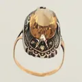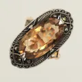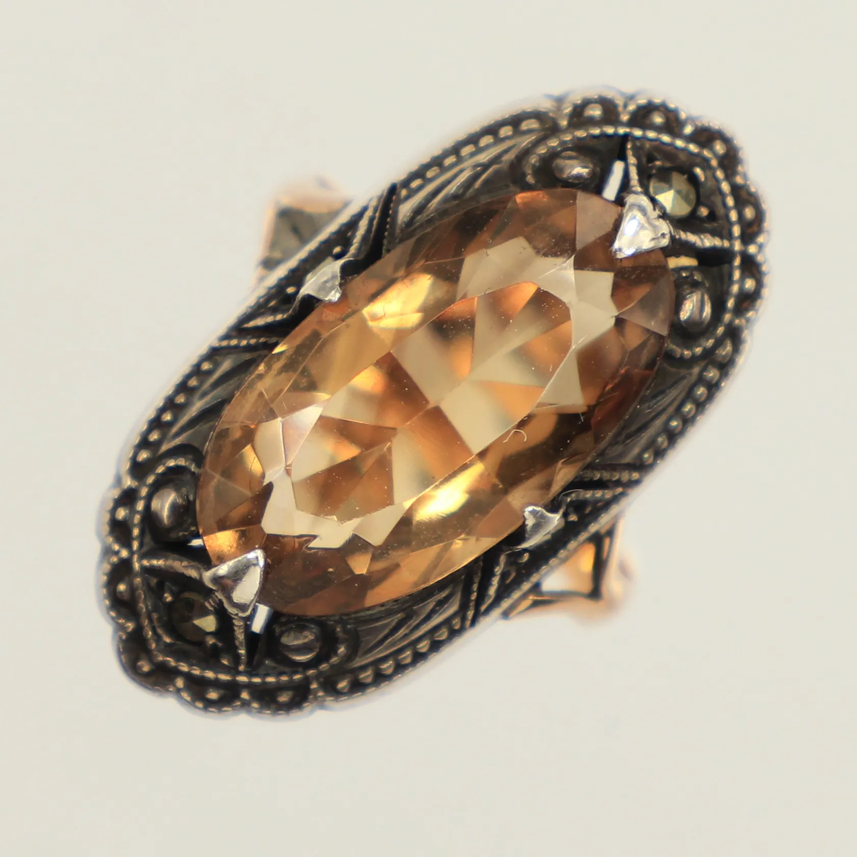 Ring med rökkvarts och markasiter, stl 16½, bredd 1,9-25mm, del i silver, sten löst infattad, något skev, 18K Bruttovikt 4,5g Vikt: 4,5 g.