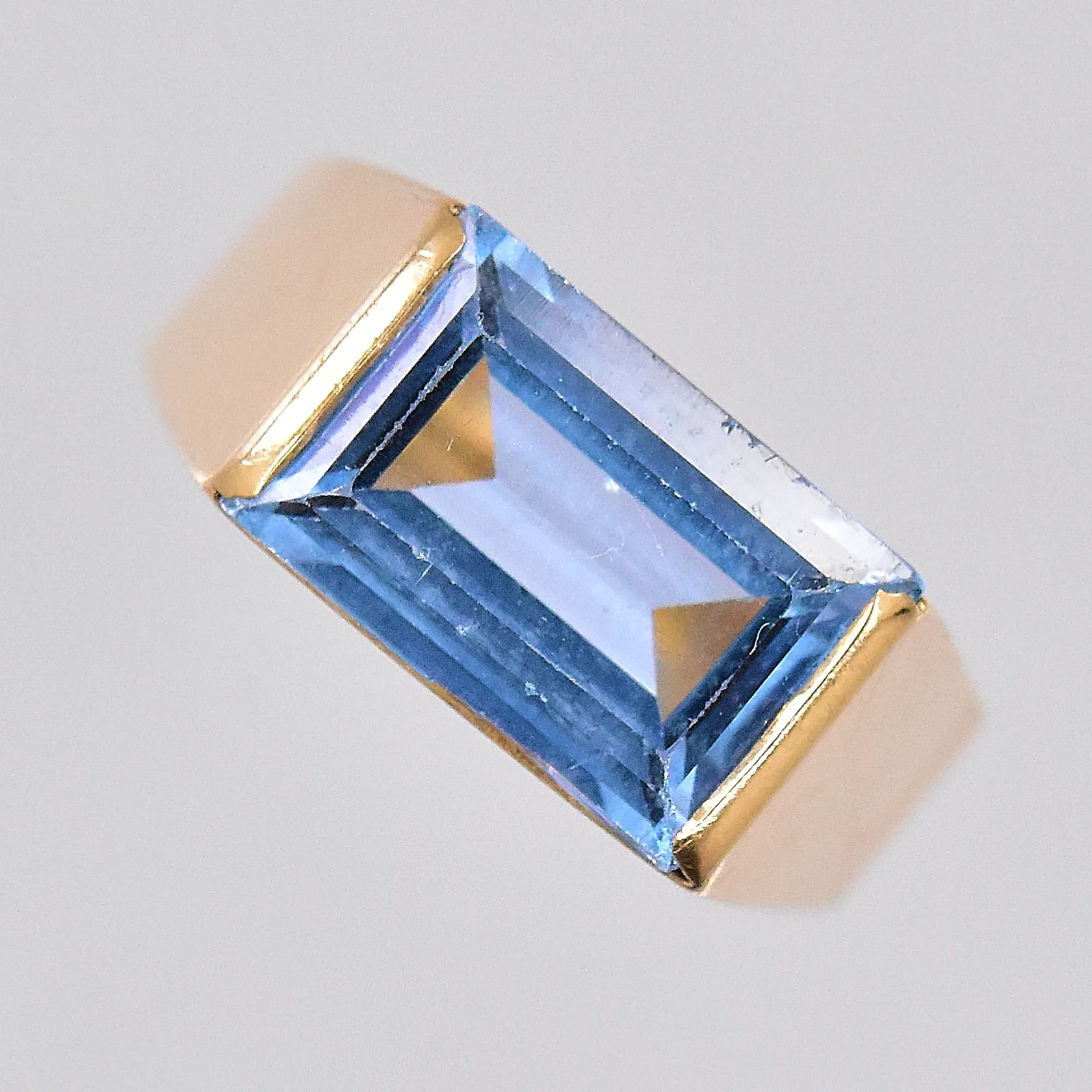 Ring med ljusblå sten, stl 18, 18K Vikt: 4,2 g.