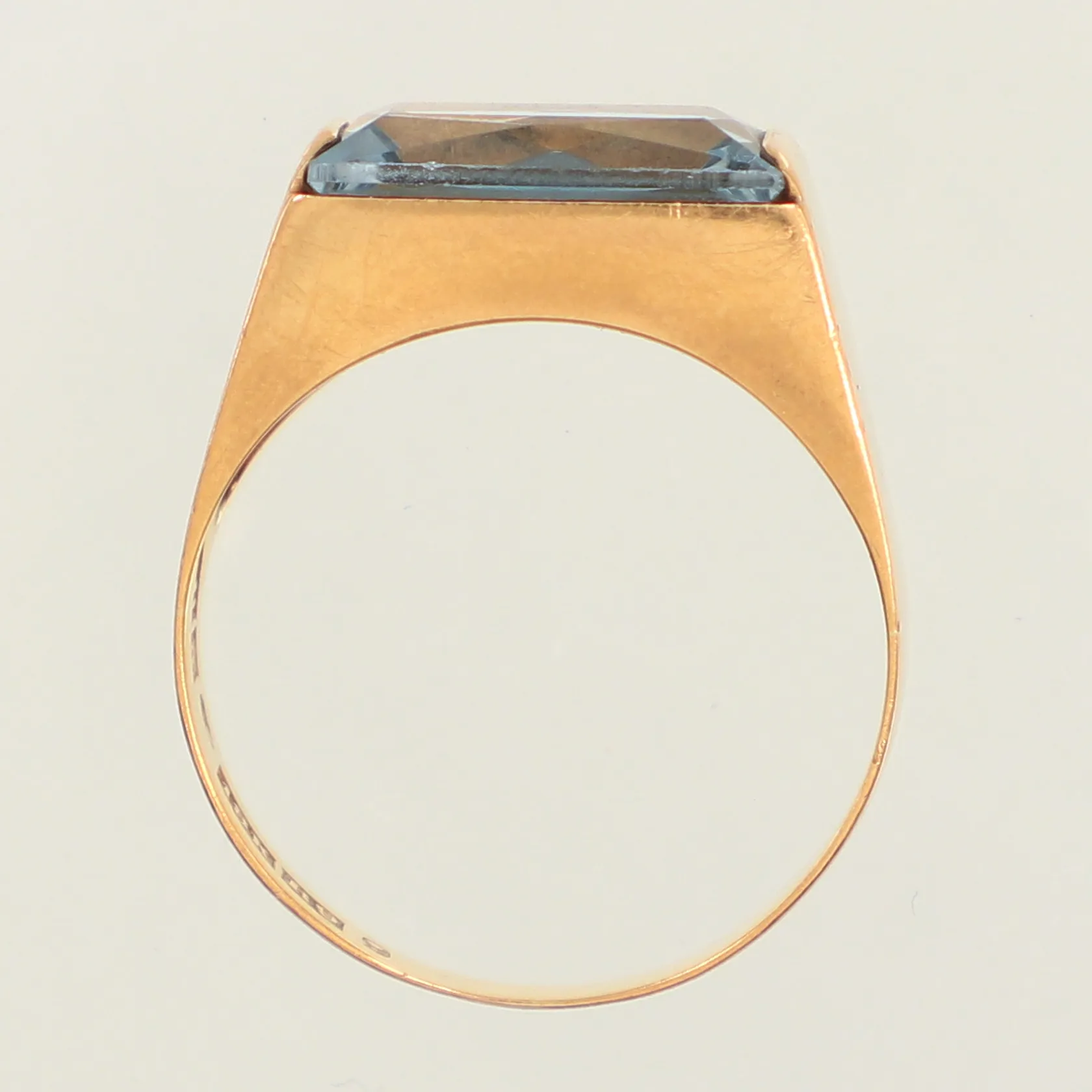 Ring med blå syntetisk spinell, stl 17¼, bredd ca 7,6mm, repig sten, Bengt Hallberg Guldsmeds AB år 1967, 18K Vikt: 3,3 g.