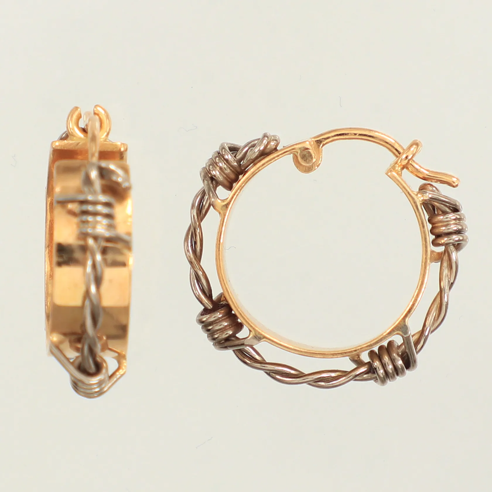 Ett par örhängen, dekor av taggtråd, Ø19,3mm, tvåfärgade, Ateljé Guldkransen, år 2007, 18K Vikt: 8 g.