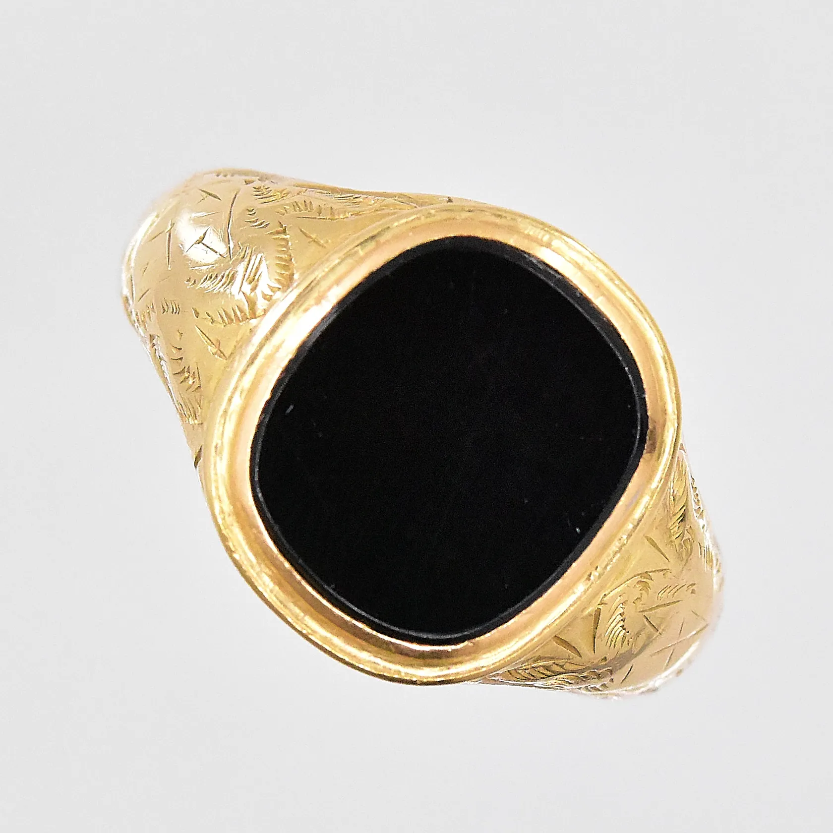 Klackring med onyx, stl 19¾, 18K Vikt: 5,6 g.