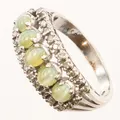 Ring med krysoberyller samt syntetiska och äkta diamanter, en krysoberyll skadad/ med sprickor, stl: 18½, bredd ca 9,5mm, vitguld, 18K Vikt: 7,7 g.