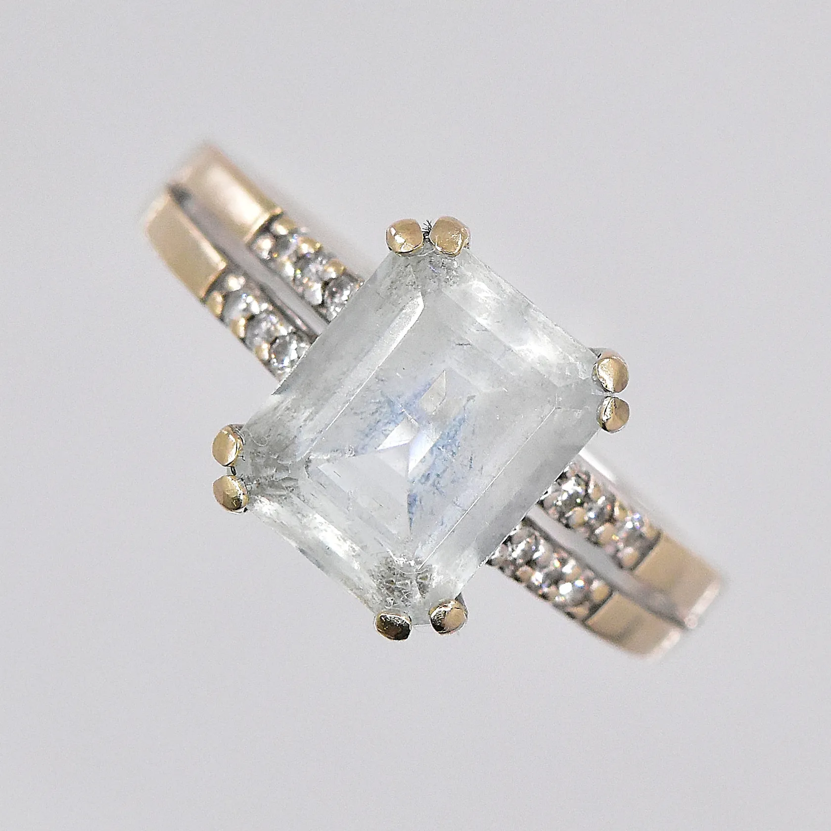 Ring med ljusblå sten och diamanter 12x ca 0,005ct, stl 19¼, GHA, vitguld, behov av omrodiering, 18K Vikt: 5 g.