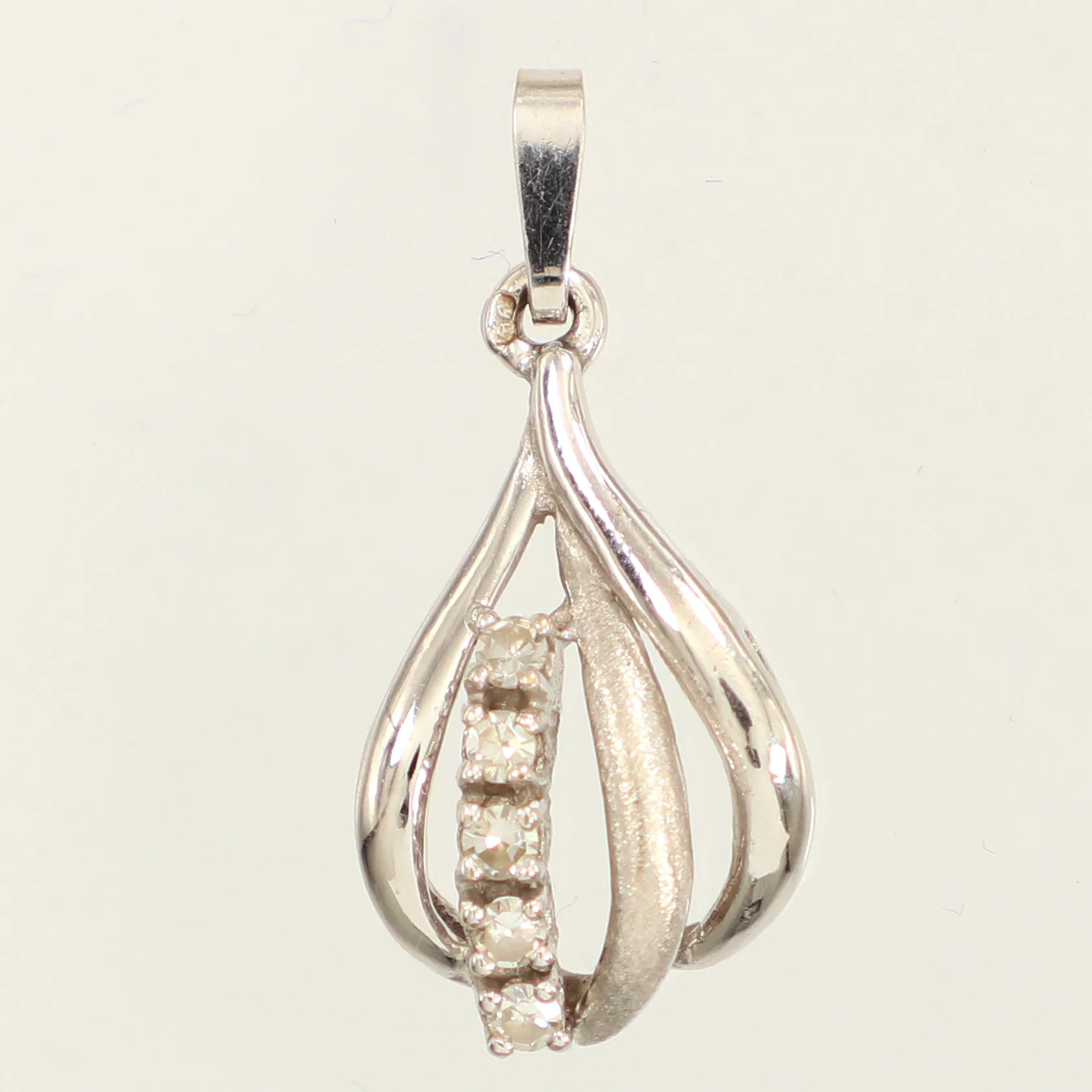 Hänge med diamanter ca 5 x 0,02ct, längd inkl öga ca 23mm, bredd ca 2-12mm, vitguld, 18K Vikt: 2 g.