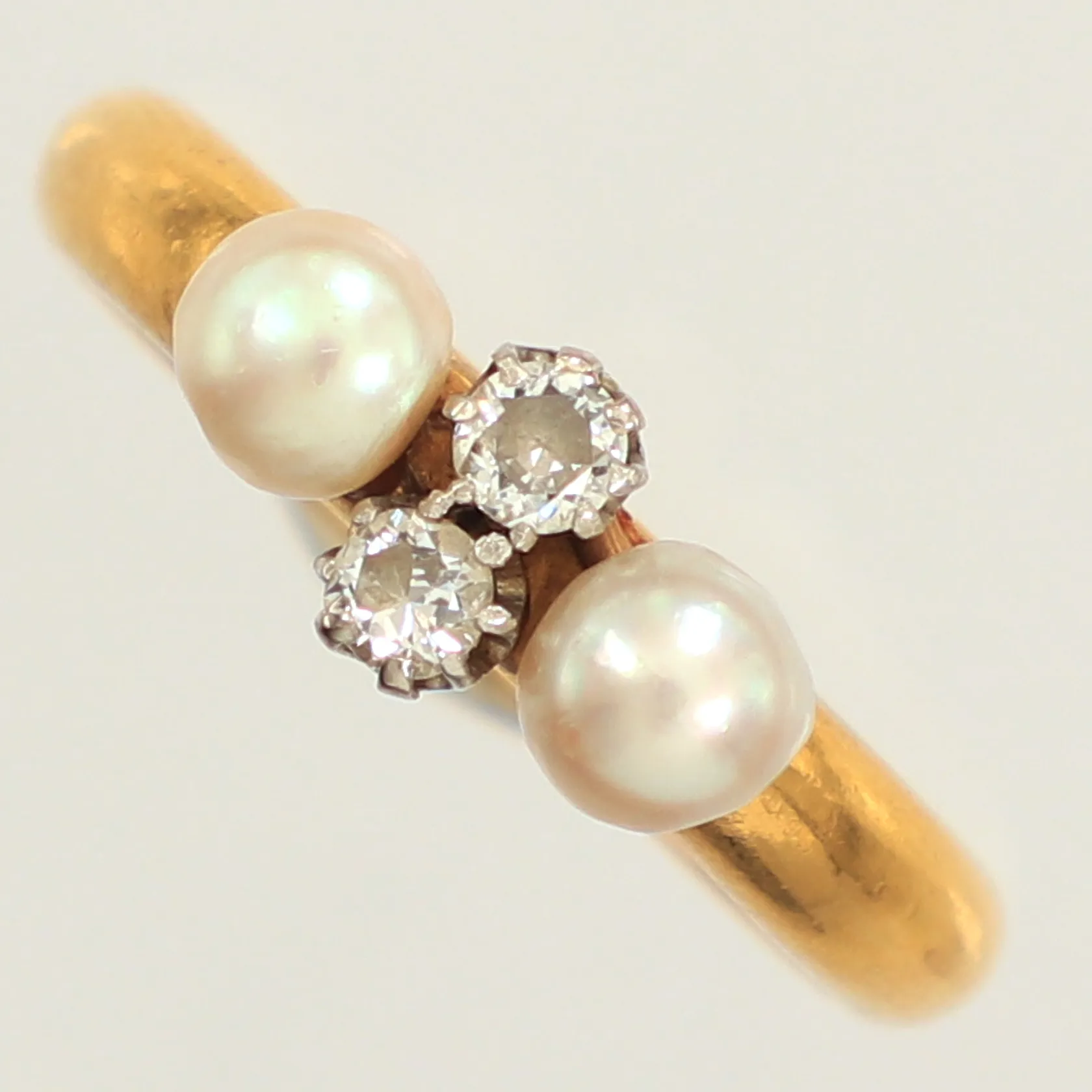 Ring diamanter 2x ca 0,10ct, pärlor, stl 18, bredd 6,6mm, gravyr, 23K Vikt: 6,6 g.