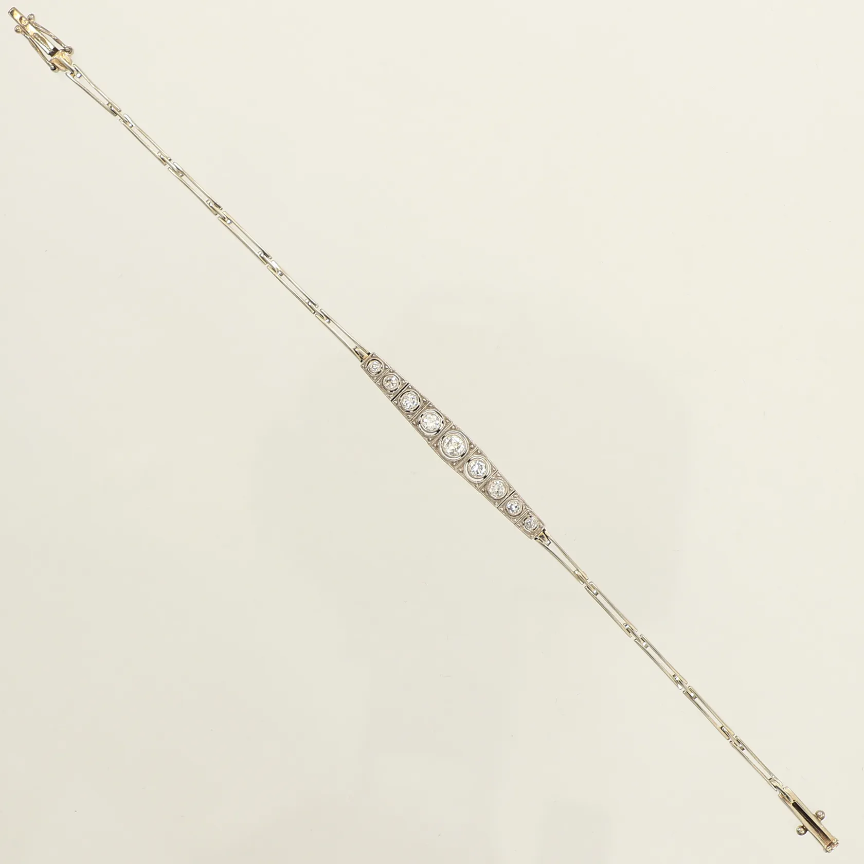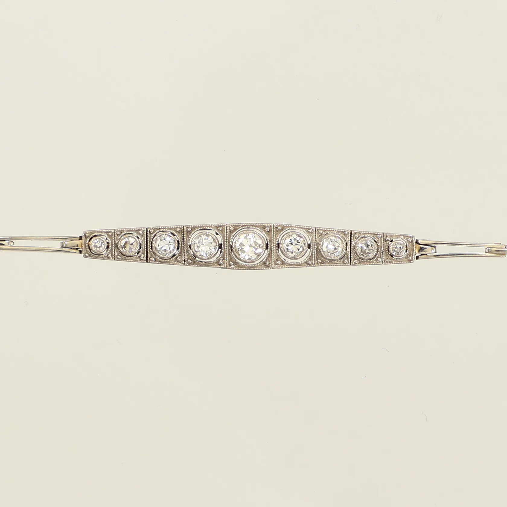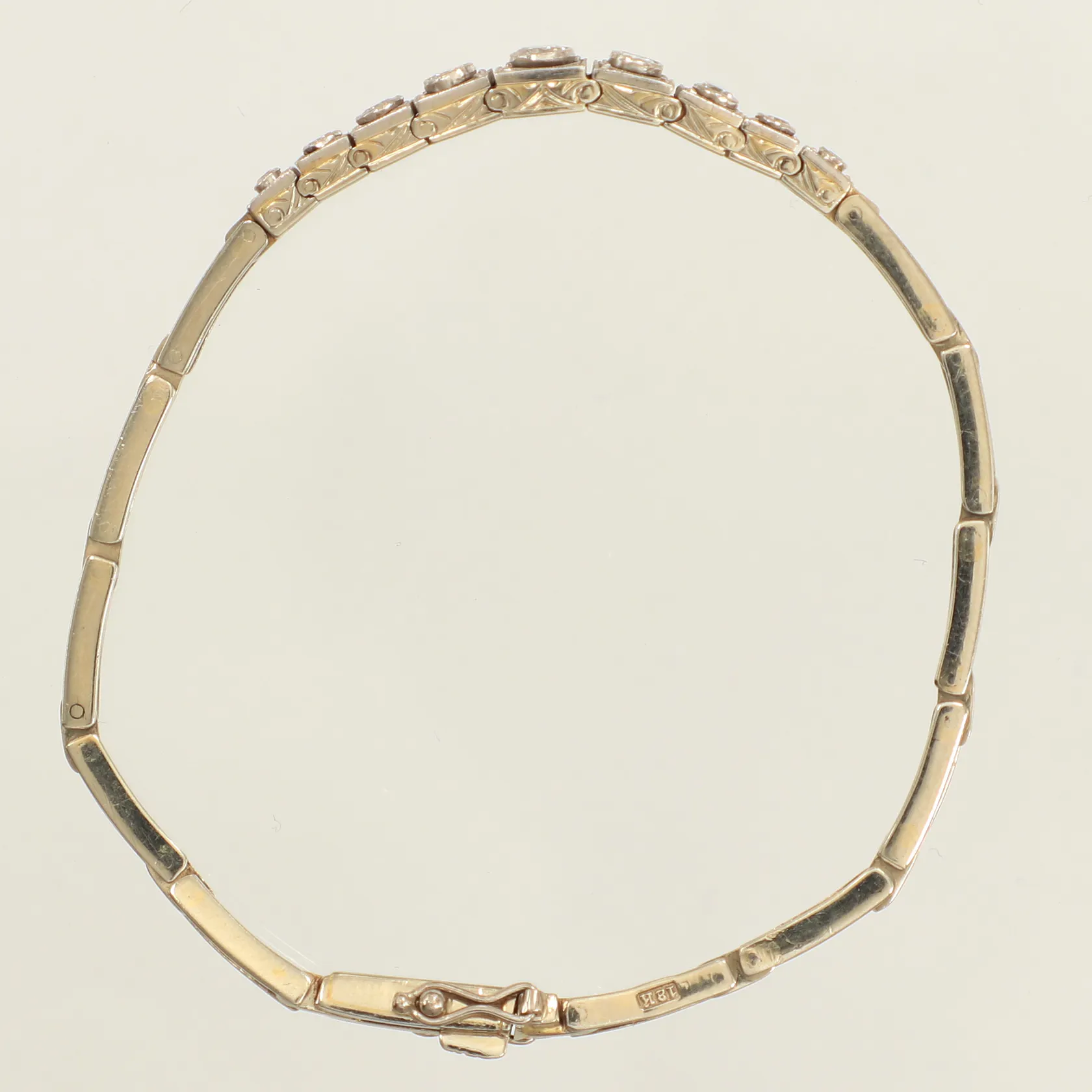 Armband, diamanter 2xca0,01ct, 2xca0,02ct, 4xca0,05ct två indikerar på syntetiska, 1xca0,10ct, längd 16cm, bredd 1,5-4,9mm, vitguld, 18K Vikt: 7,9 g.