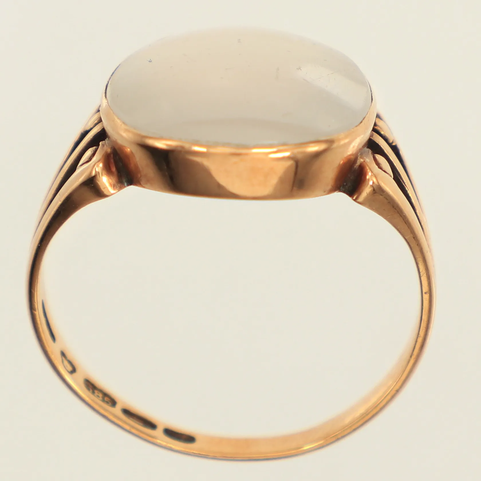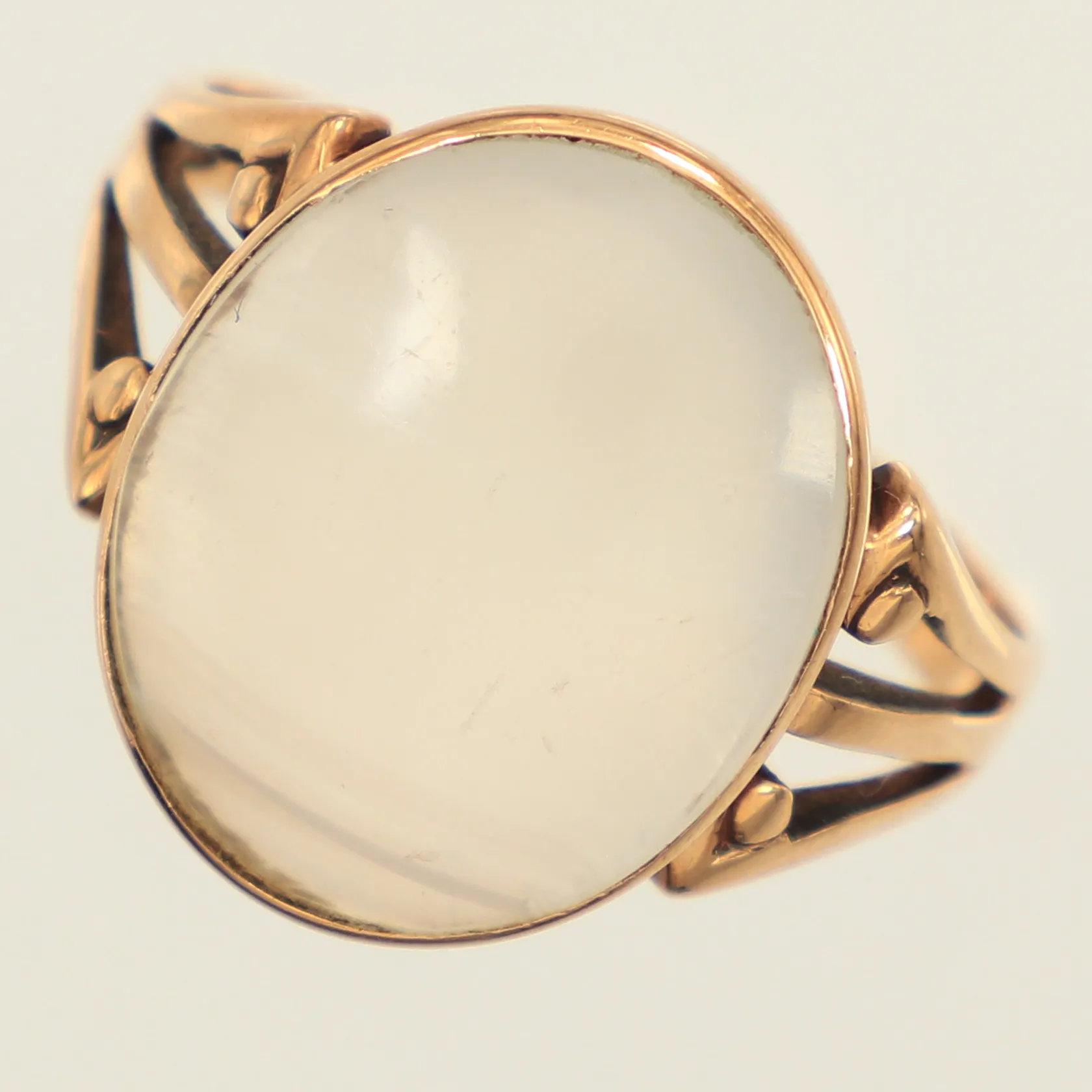 Ring, vit agat, stl 19¼, bredd 2,5-18,6mm, finska stämplar, något skev skena, 14K Vikt: 5,8 g.