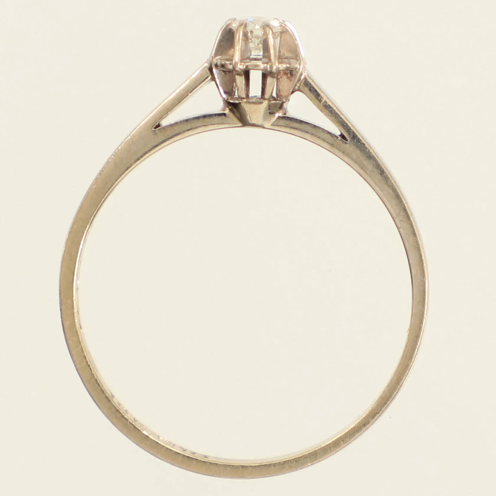 Ring, diamant ca0,08ct, stl 16, bredd 1,5-4,4mm, vitguld, 18K Vikt: 1,6 g.