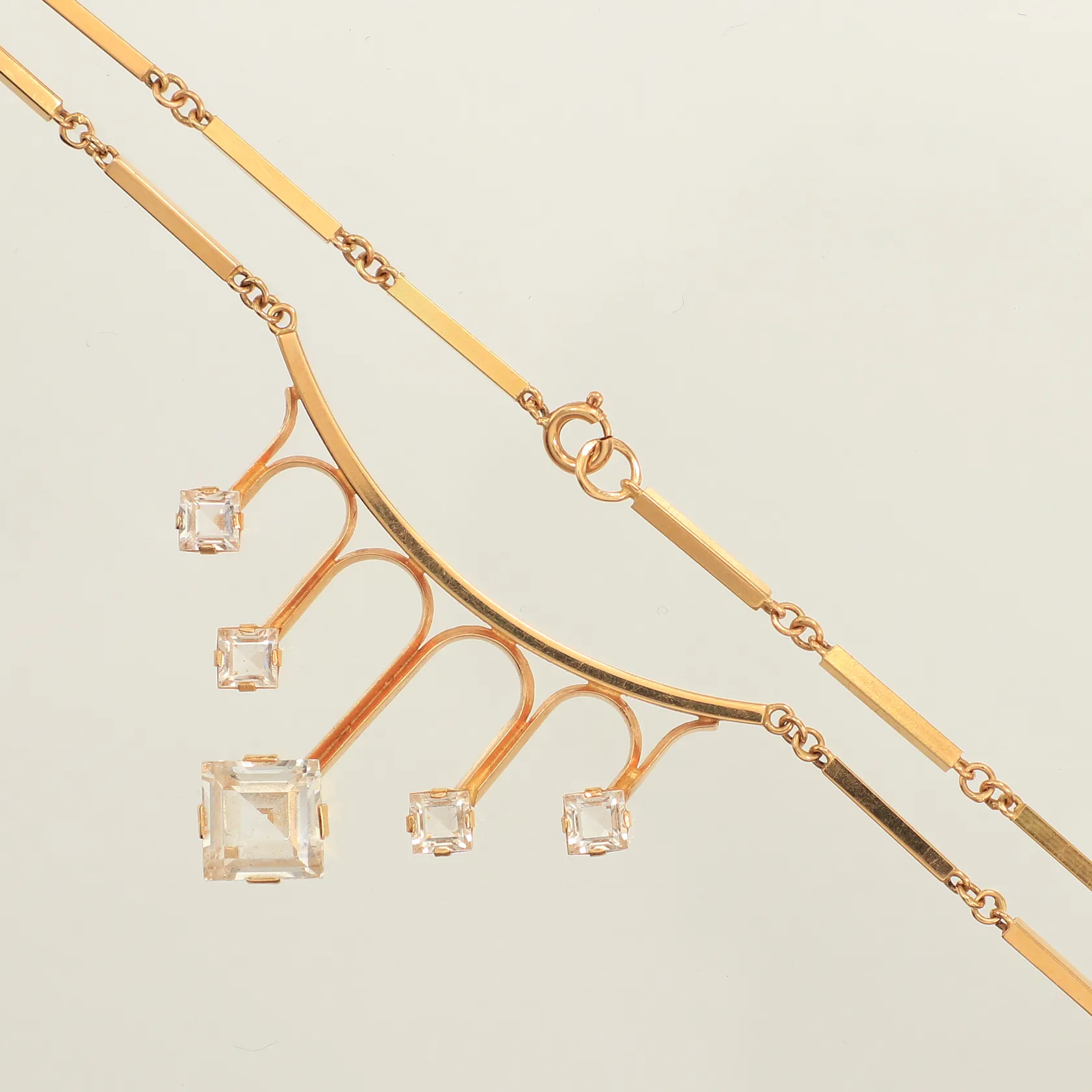 Collier, vita stenar, längd 47,5cm, bredd 1,5-26,65mm, 18K Vikt: 9,4 g.