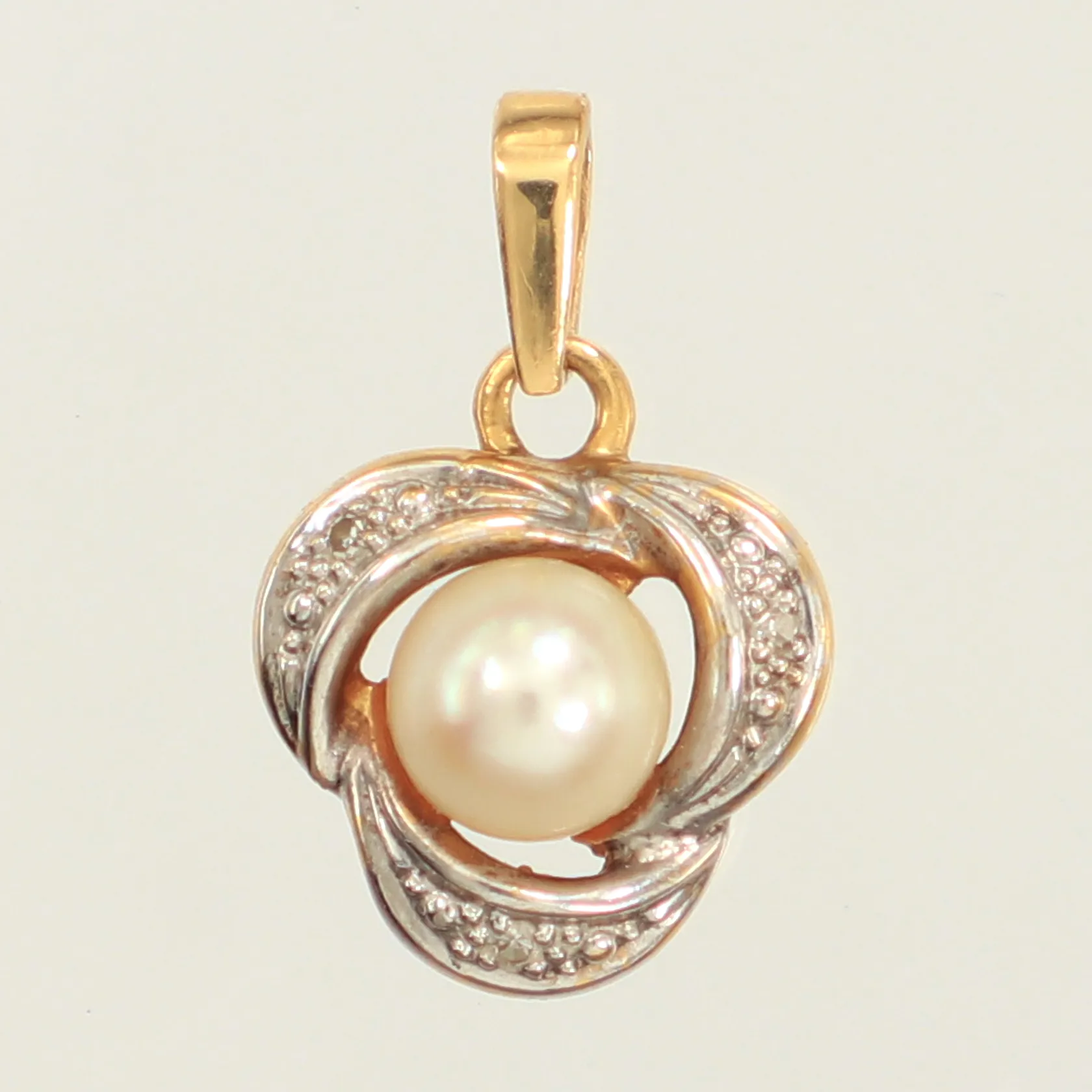 Hänge, pärla, diamanter 3xc0,005ct, längd inkl ögla ca 16mm, bredd ca 10mm, 18K Vikt: 1,5 g.