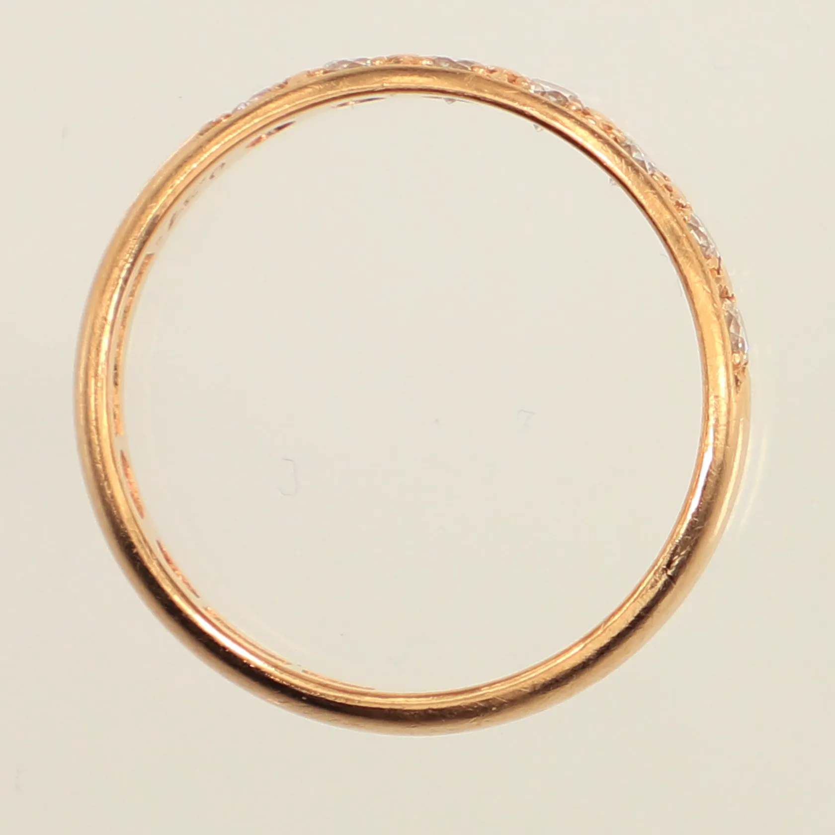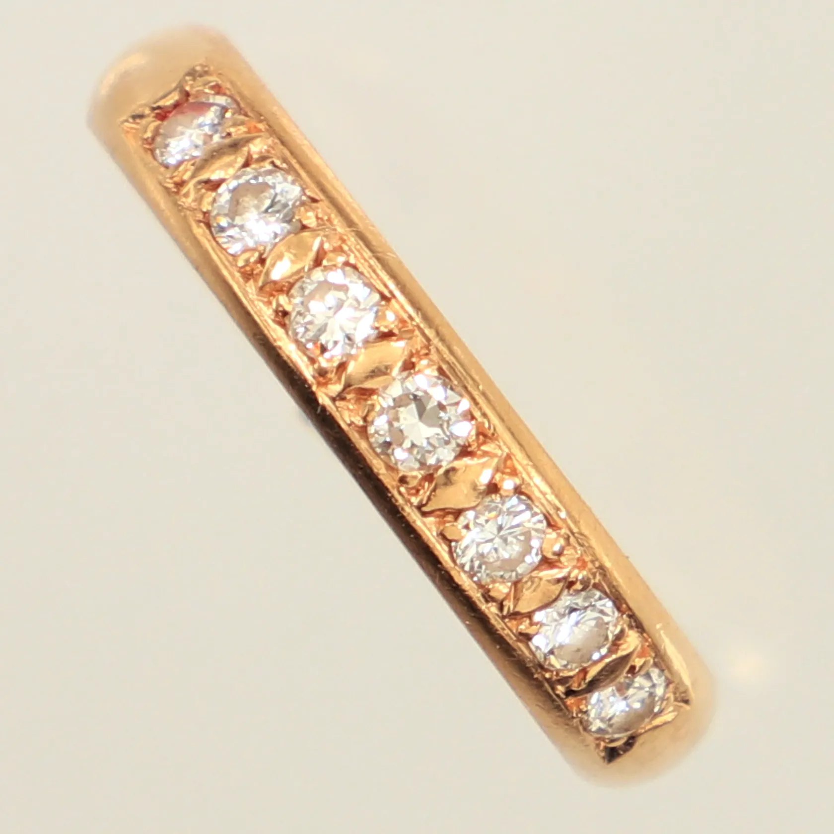 Ring halvallians med diamanter 7x ca 0,04ct totalt 0,31ct enligt gravyr, tre stenar indikerar på syntet, stl 18, bredd 3,8mm, Malmberg & Co Ernst Göteborg 1967, 18K Vikt: 3,3 g.