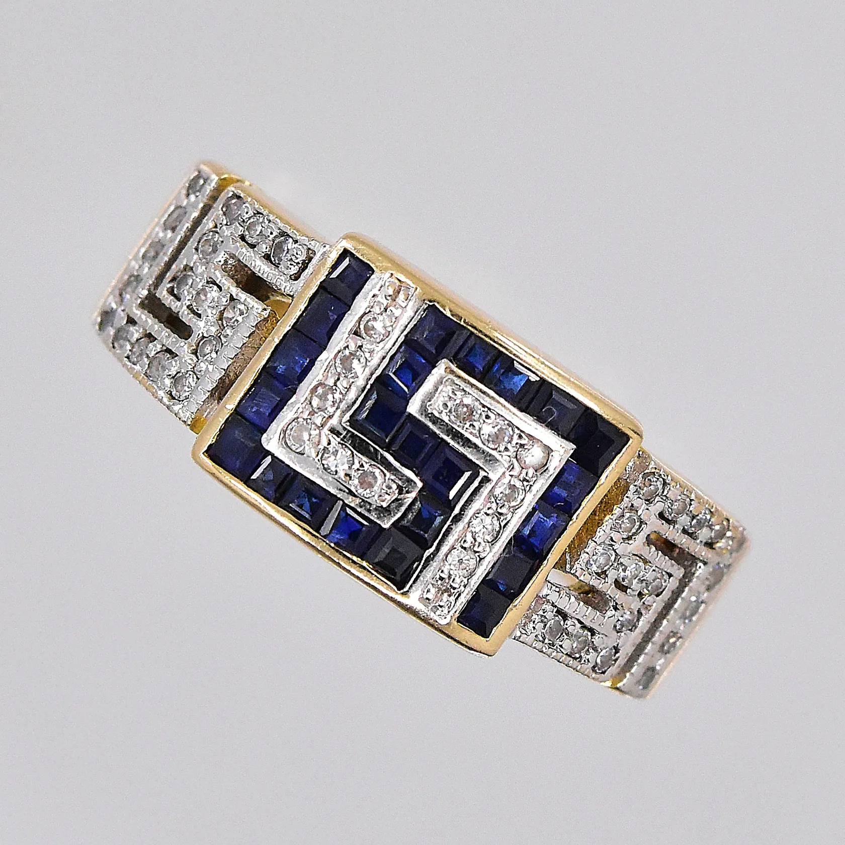 Ring med vita och blå stenar, stl 17½, 14K Vikt: 5 g.